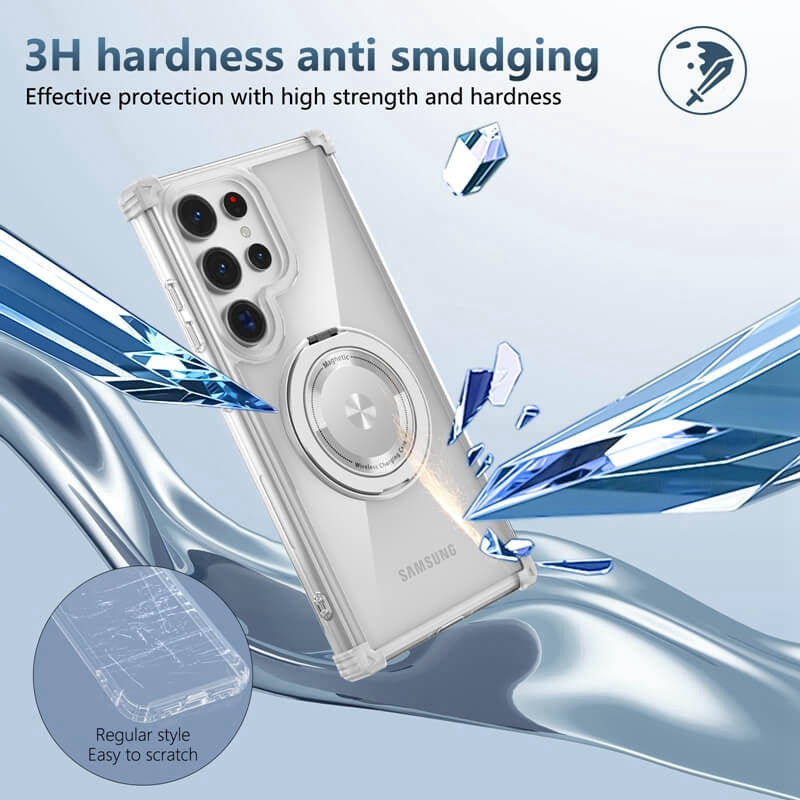 TPU+PC Magnetic Transparent Shockproof Phone Case with Stand, Mobile Phone Protection for Samsung S25 S24 S23 S22 S21