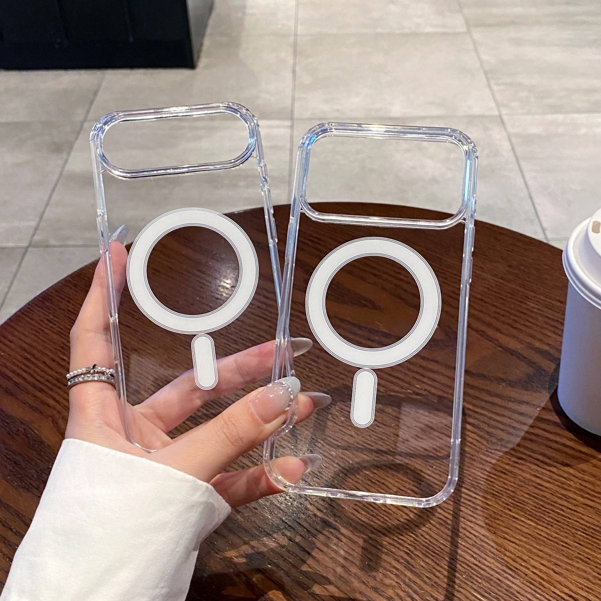 Premium shockproof transparent TPU+PC phone case for iPhone 16, support wireless charging and magnetic back cover
