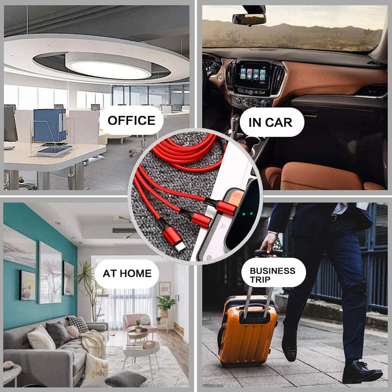 3 in 1 Durable Nylon Multi-Function Charging Cable 1.2M
