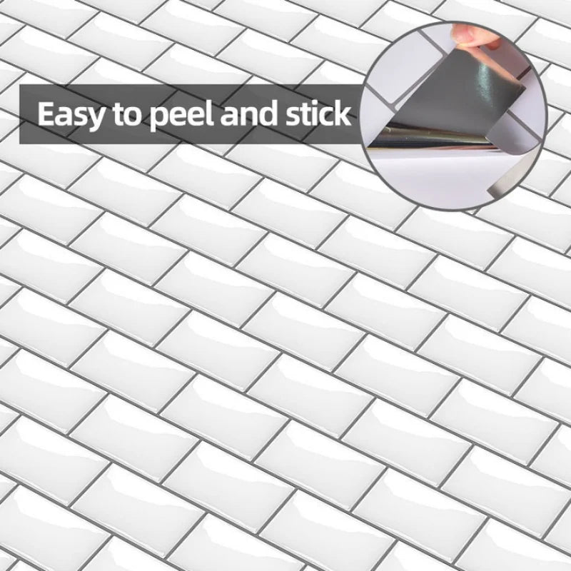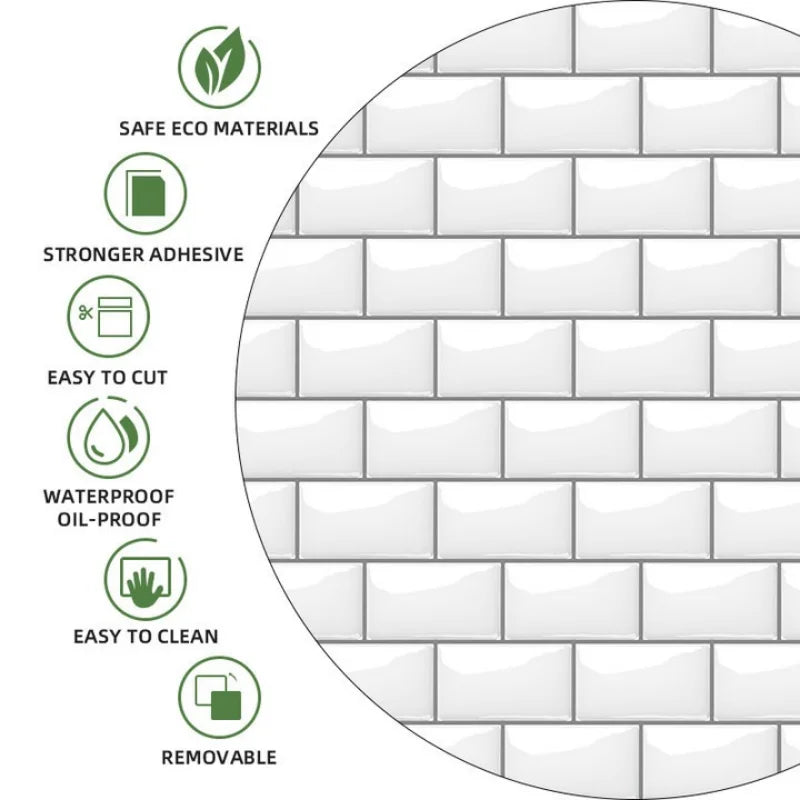1/4/8 Sheets 3D Faux Tile Wall Sticker White Self Adhesive Tiles Waterproof Wallpaper Backsplash for Kitchen Living Room Decor