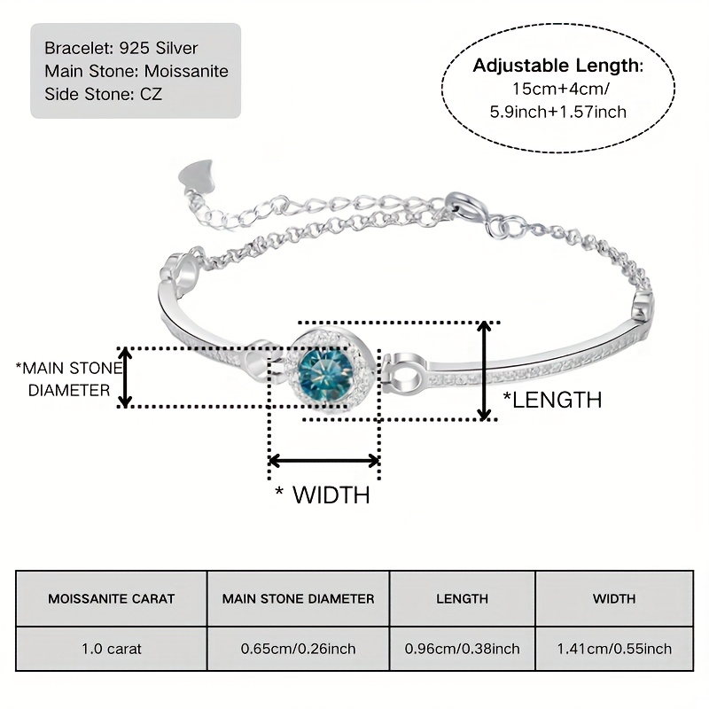 1 Carat Moissanite Turquoise Bracelet - Exquisite 925 Silver