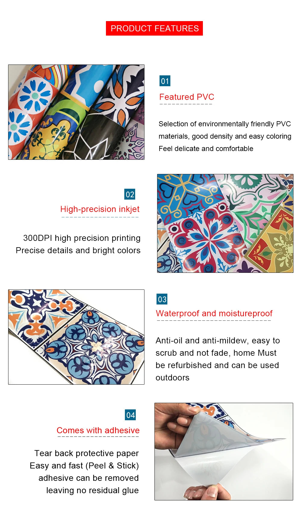 Features : Home Decor Waterproof Removable Self-adhesive Oil-proof