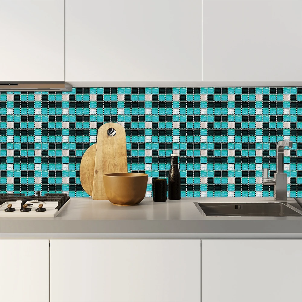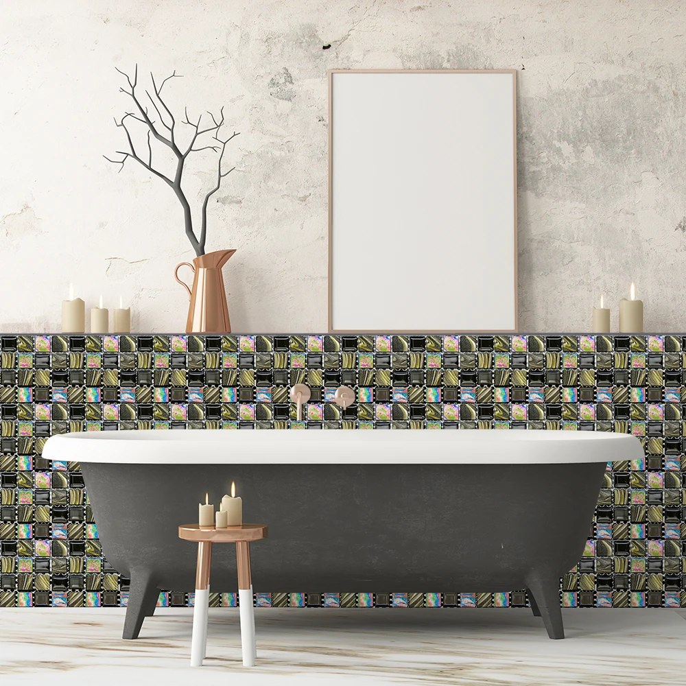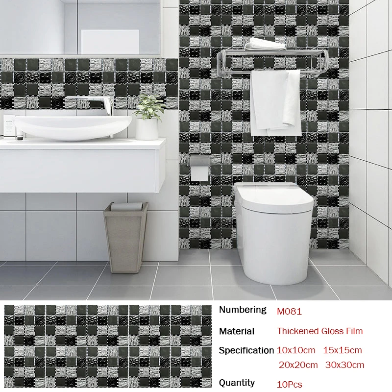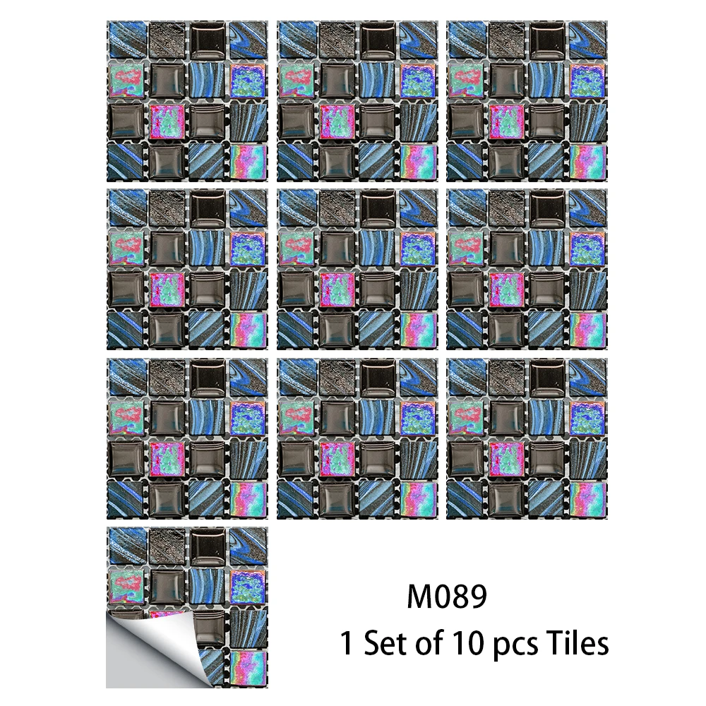 10pcs Flat Mosaic Style Tiles Sticker Kitchen Bathroom Waterproof & Oilproof Art Wall Sticker Peel & Stick Surface Glossy Film