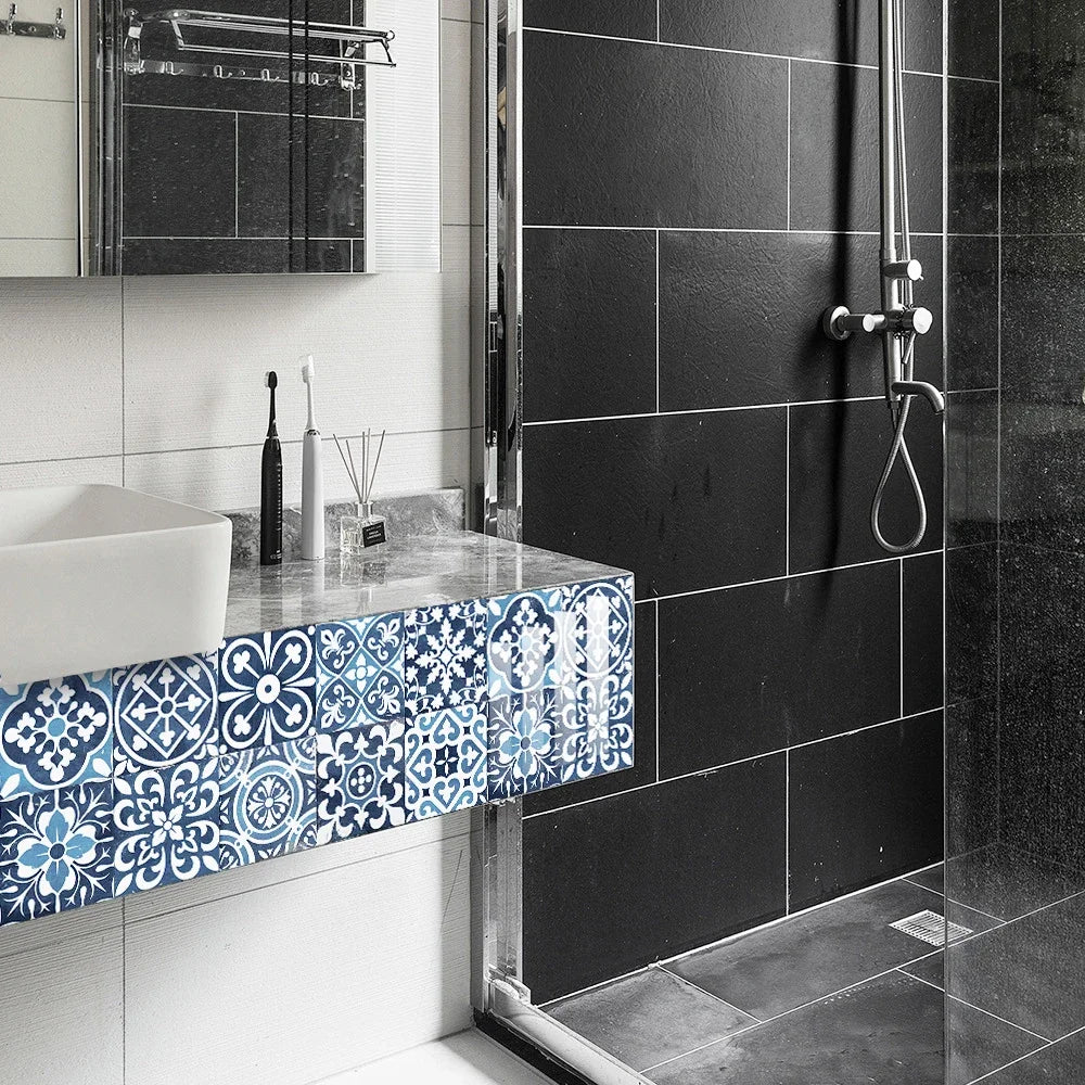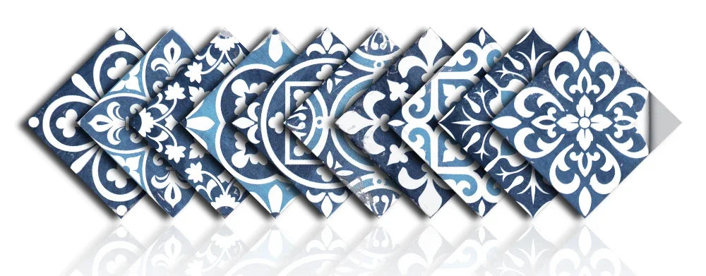 10pcs Mexican Style Tiles Sticker Kitchen Backsplash Oil-proof Cupboard Surface Gloss Peel & Stick Waterproof Art Wall Decals