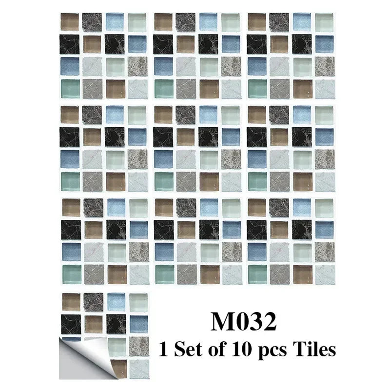 10pcs/set Marble Mosaic Tiles Wall Sticker Transfers Flat Covers for Kitchen Bathroom Stitching Stickers Self-adhesive Removable