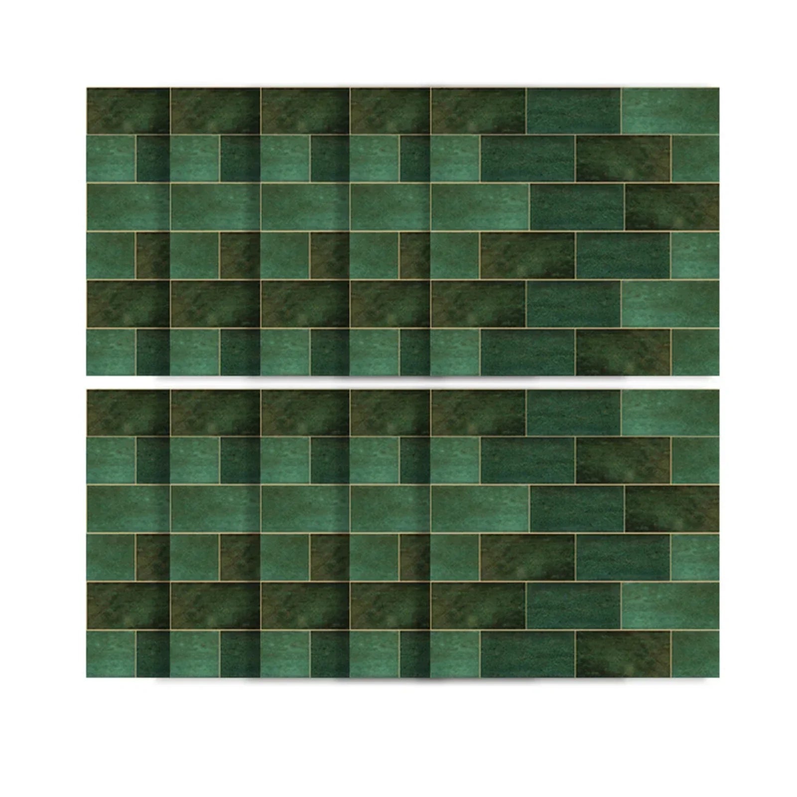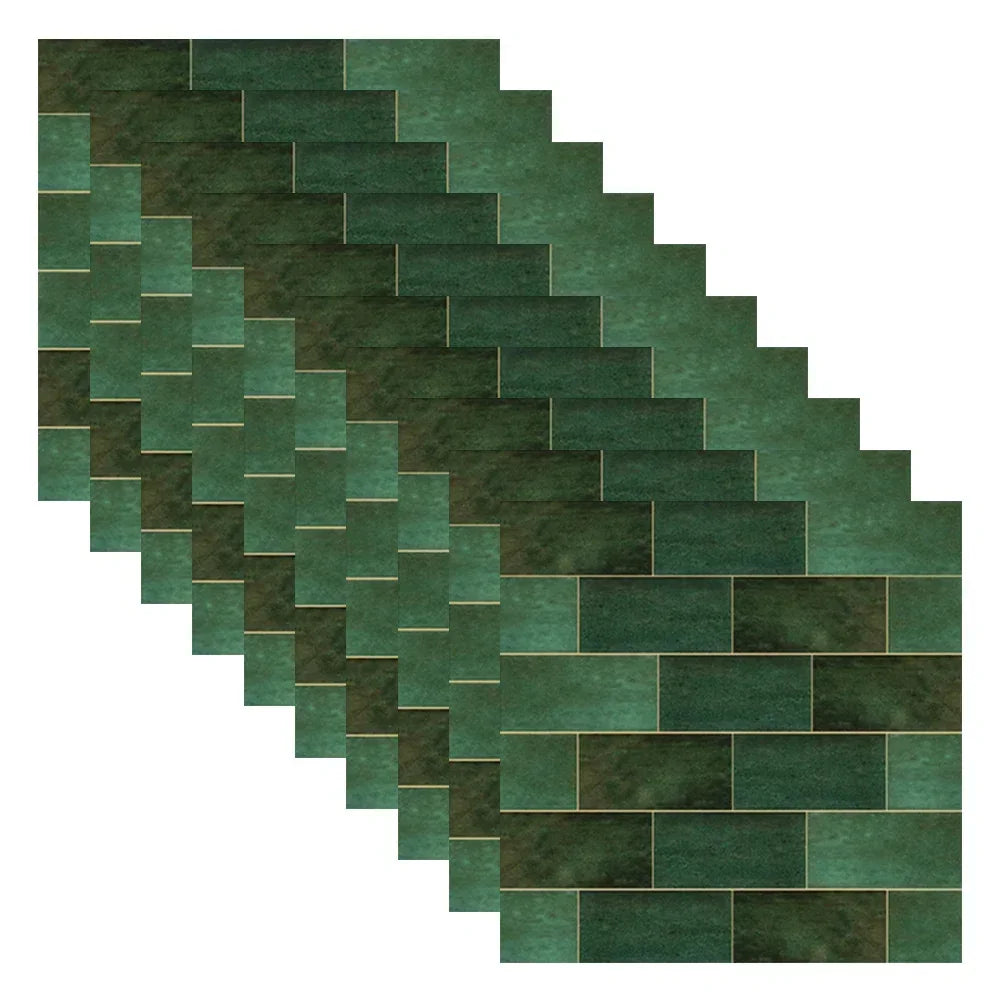 10Pcs Set Retro Dark Green Brick Wall Stickers Mosaic Tile Sticker Bathroom Kitchen Home Wall Background Embellishment