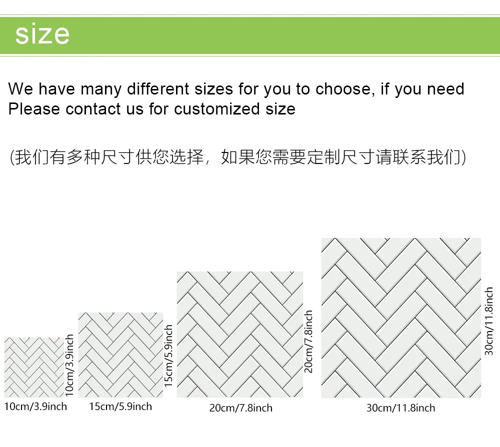 Received Size: 10cm*10cm*10pcs 15cm*15cm*10pcs 20cm*20cm*10pcs 30cm*30cm*10pcs