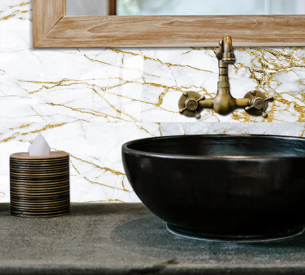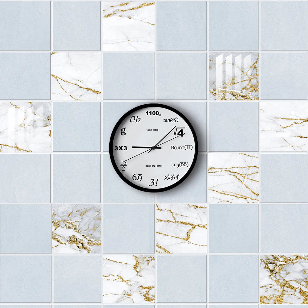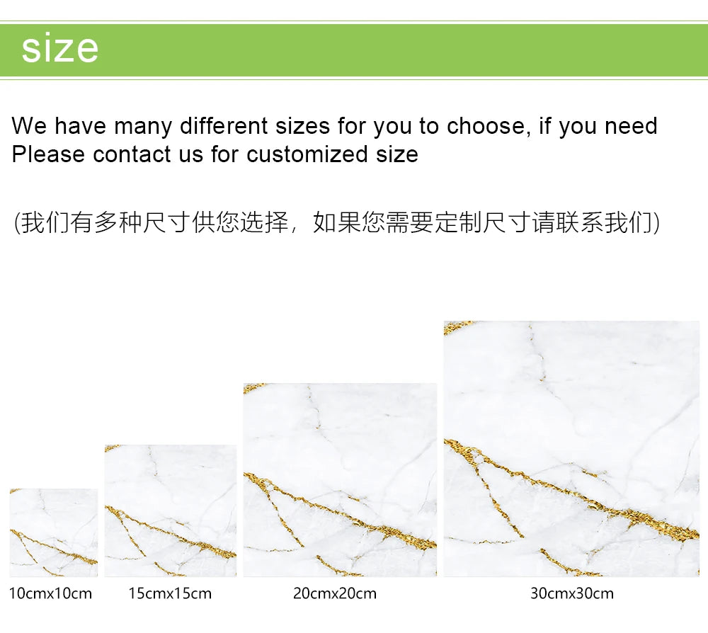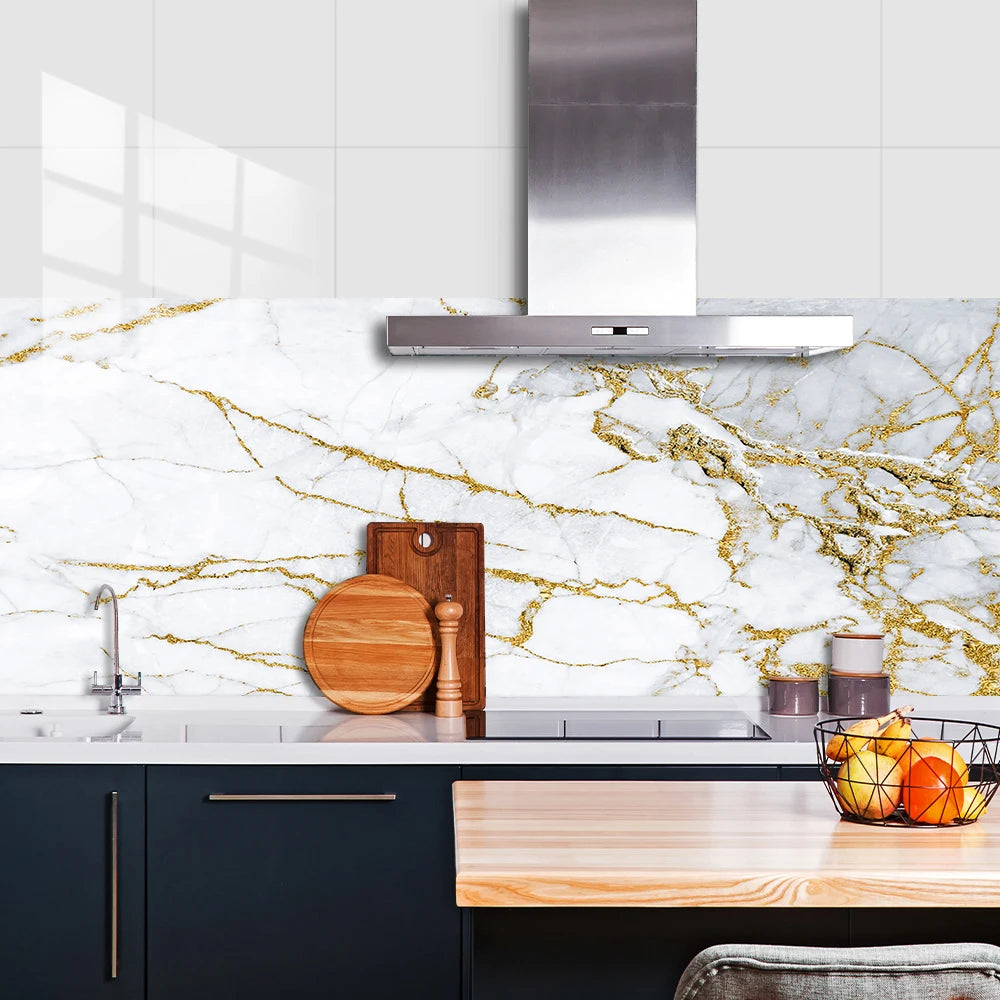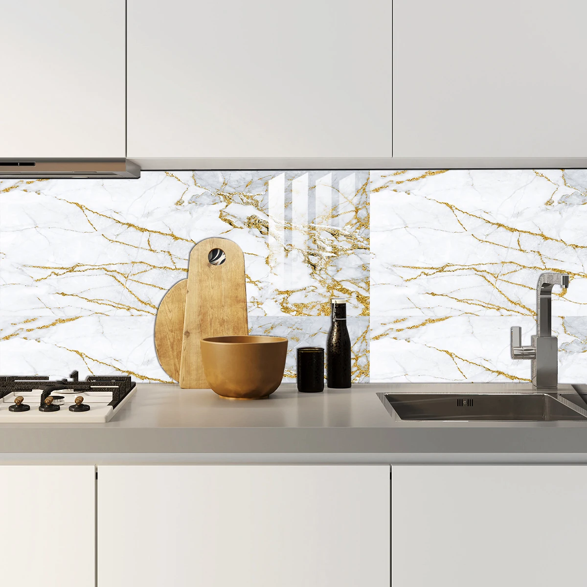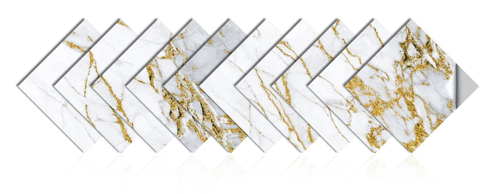 10pcs White & Gold Marble Tile Sticker Kitchen Backsplash Oil-proof Bathroom Home Decor Wall Decals Peel & Stick Art Mural