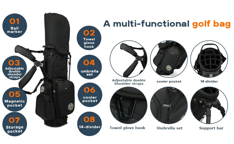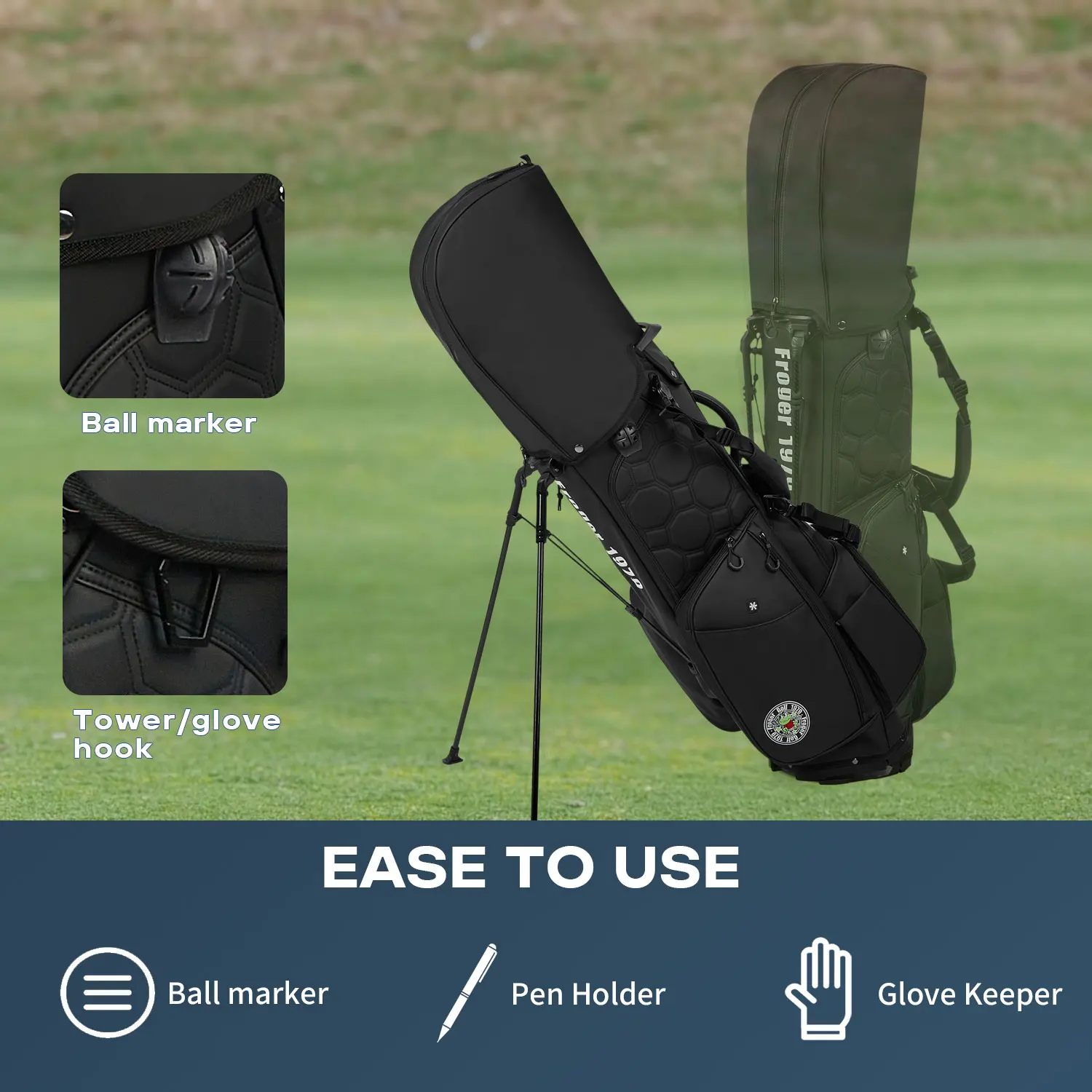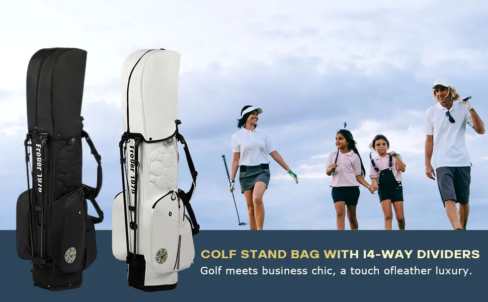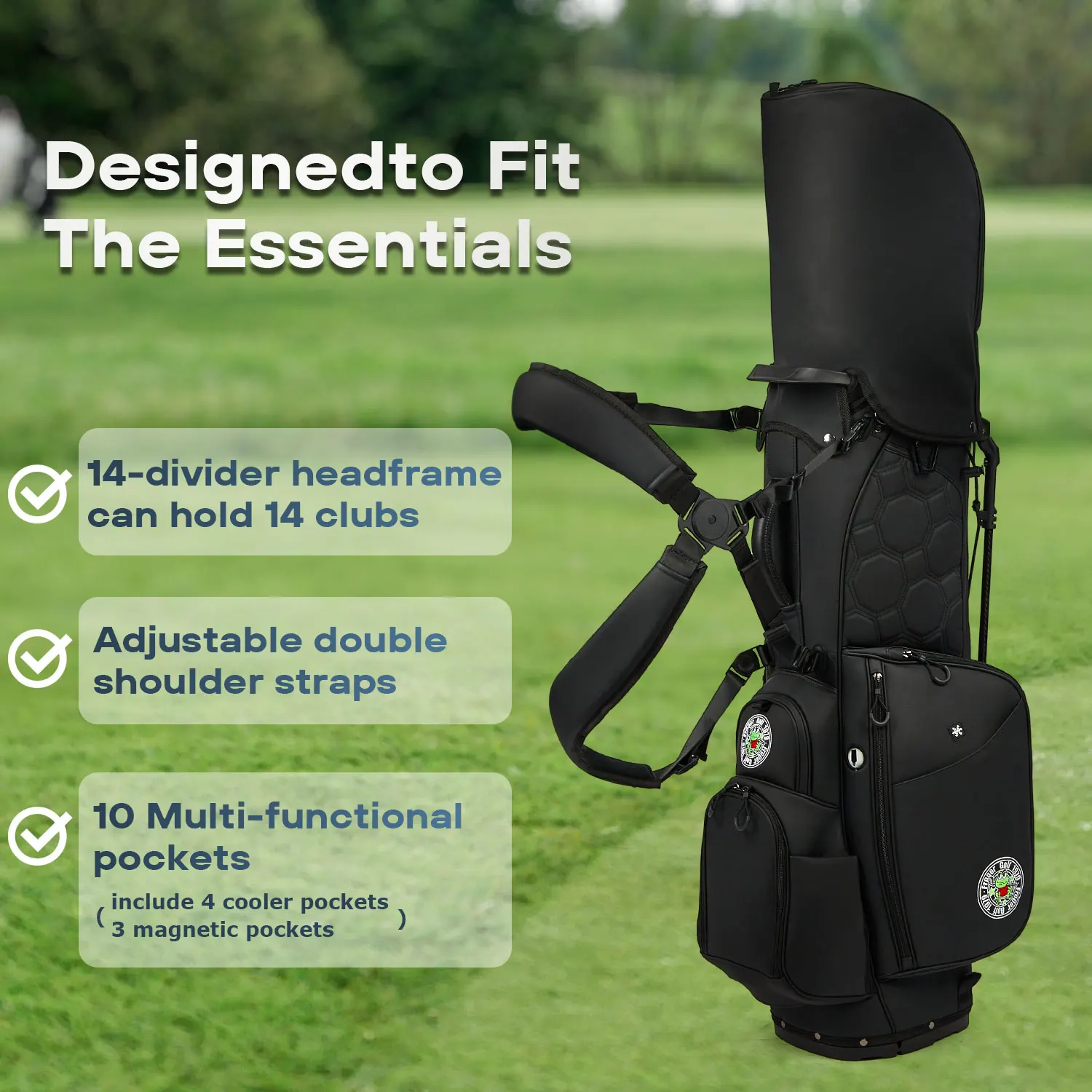 Lightweight PU Leather Waterproof Golf Bag with Stand 14 Compartments