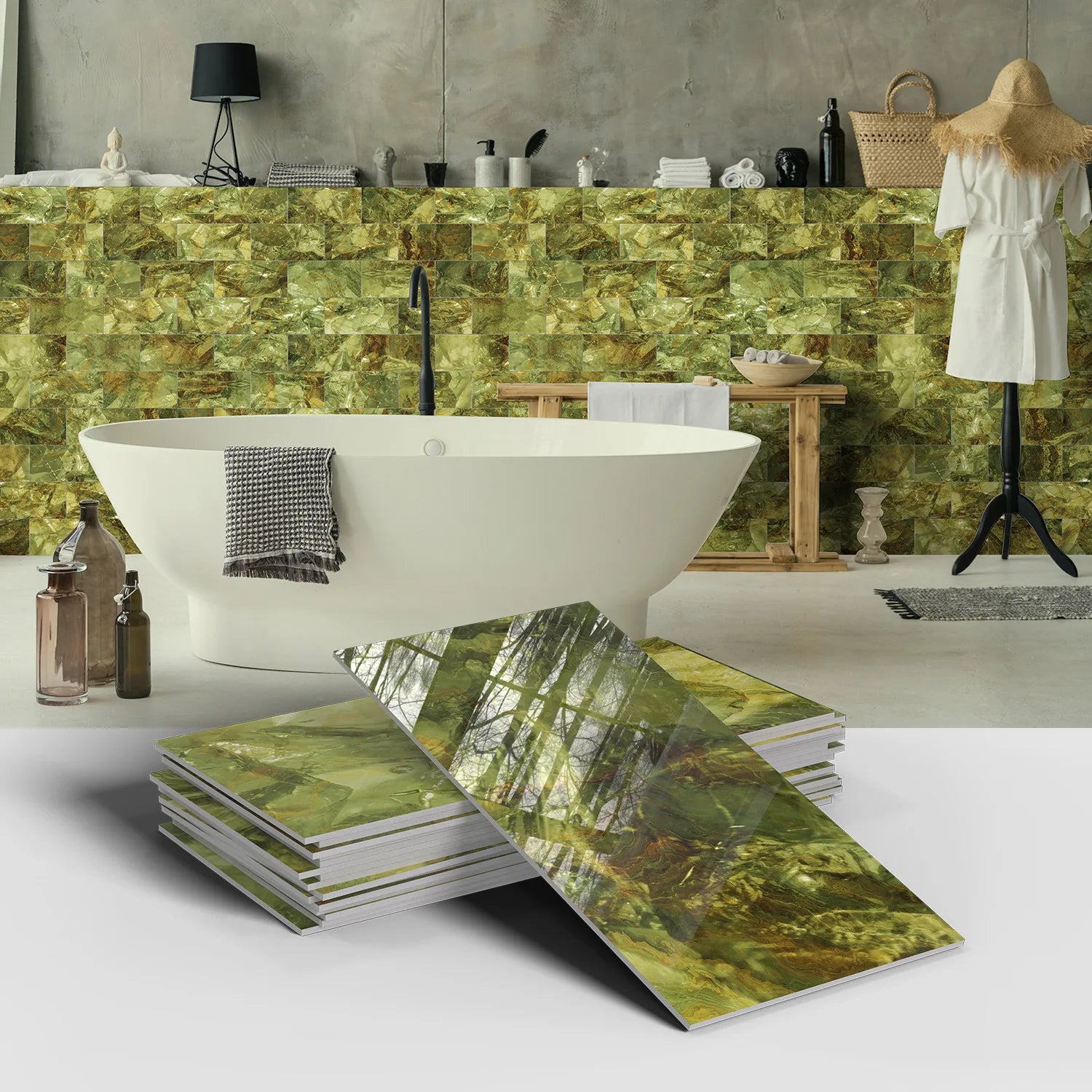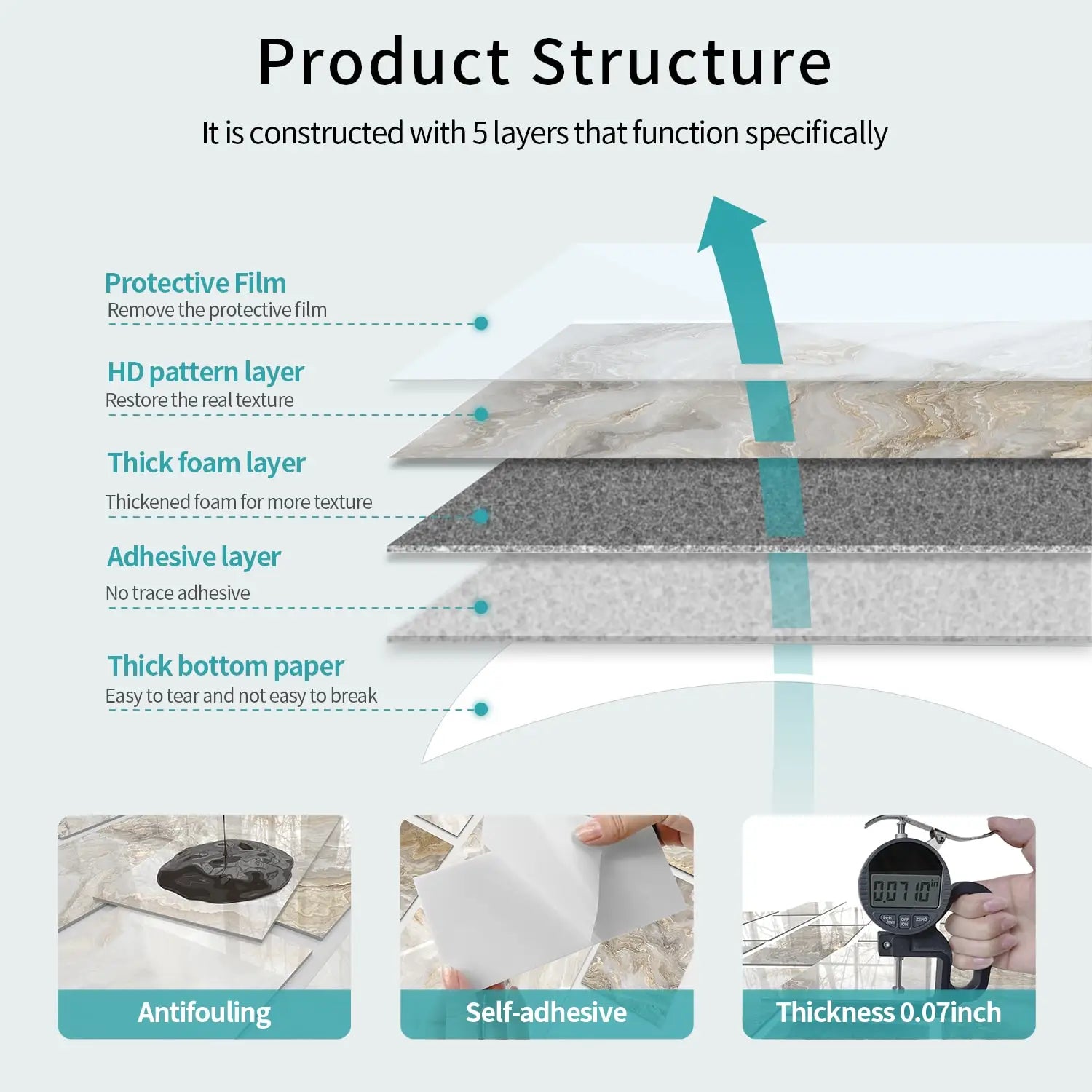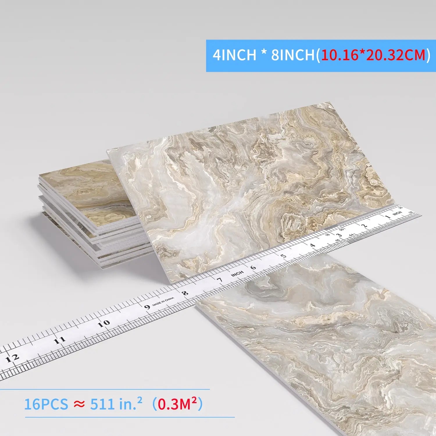 Set of 16 Waterproof Stone Pattern Foam Wall Stickers for Kitchen