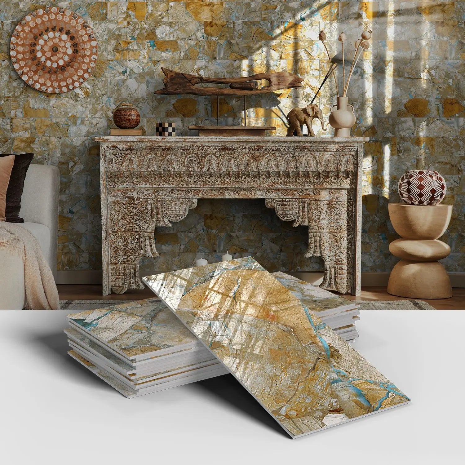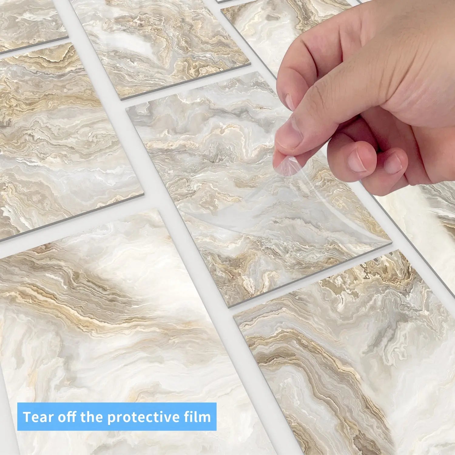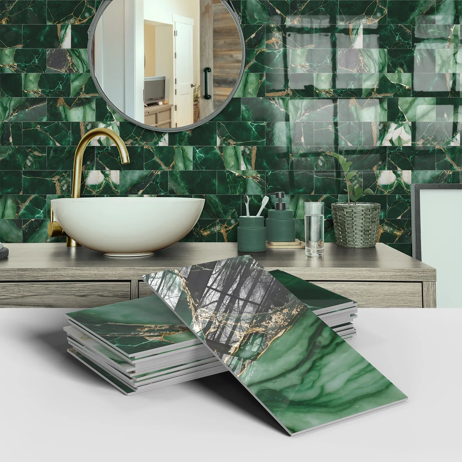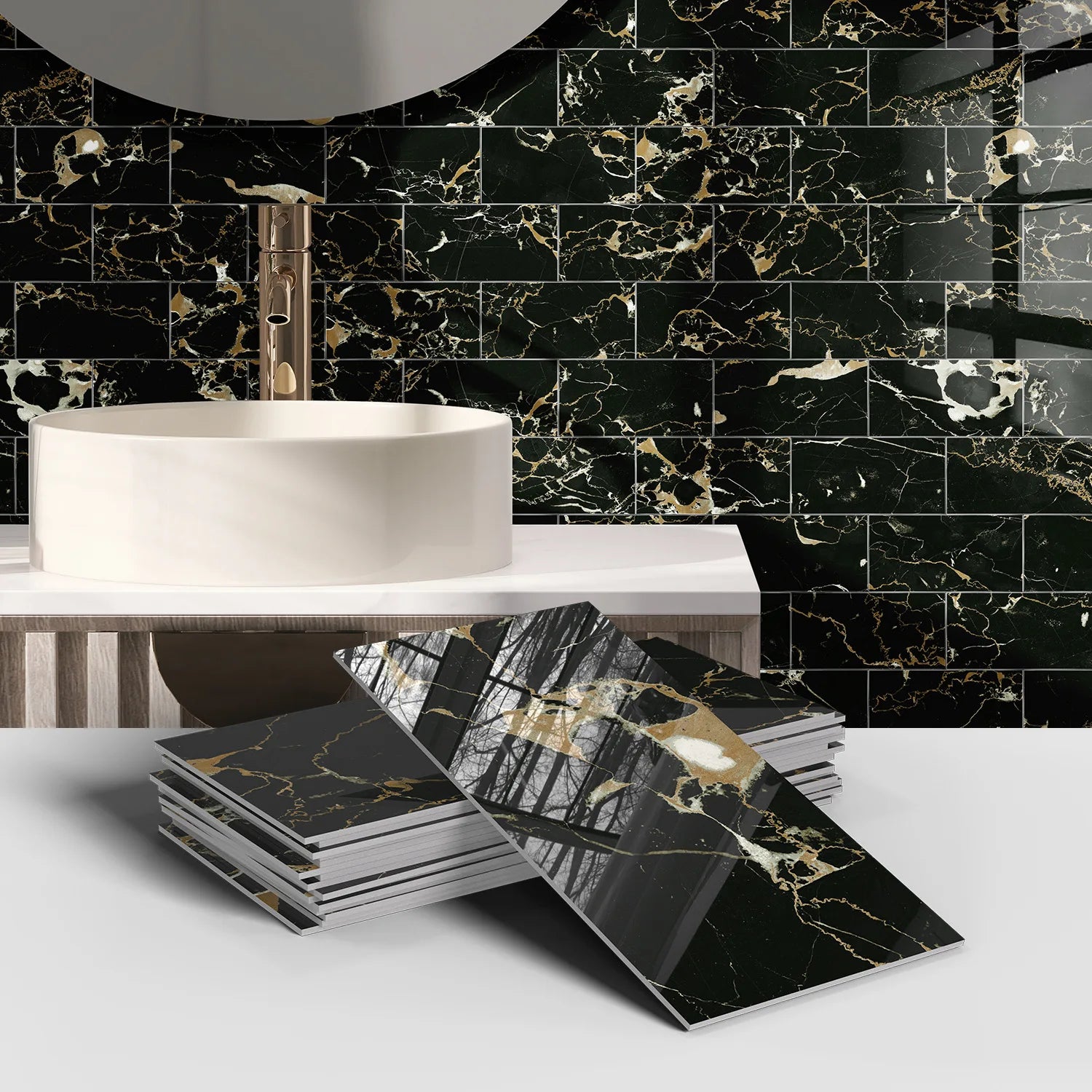 Set of 16 Waterproof Stone Pattern Foam Wall Stickers for Kitchen