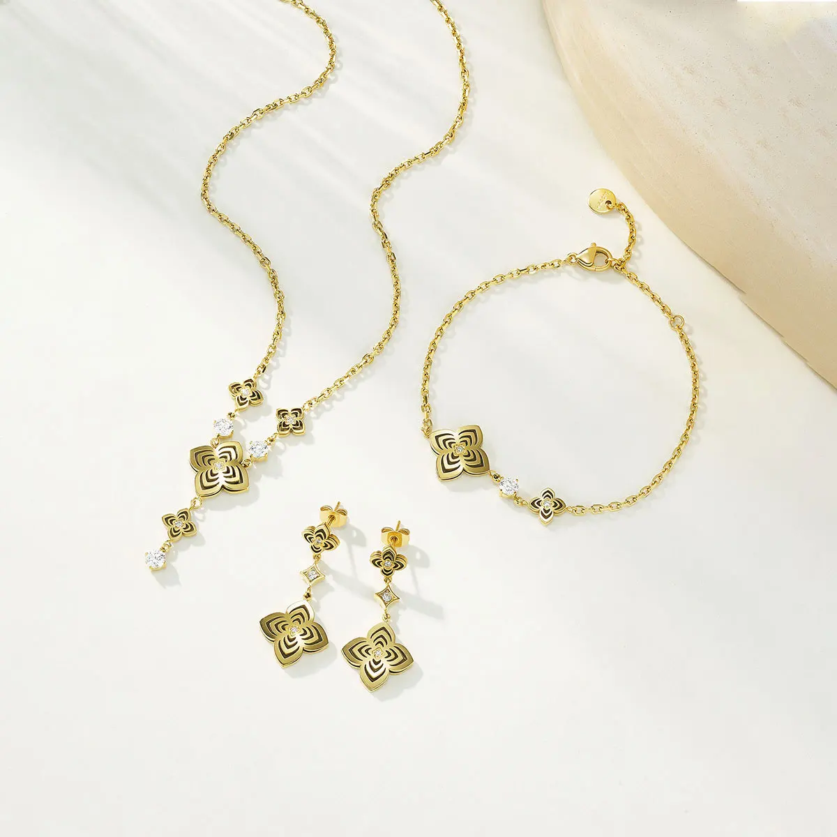 The unique geometric floral design sets this jewelry set apart, making it a standout choice for special occasions.