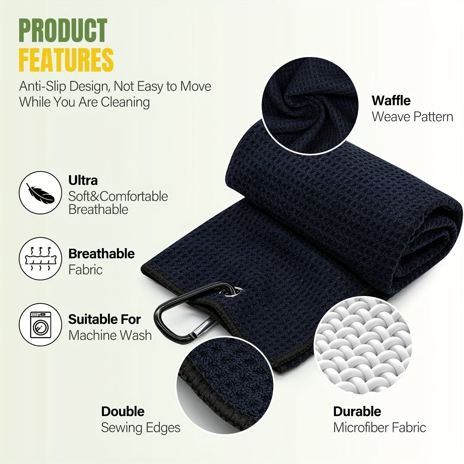 Material: Microfiber Waffle Towel with high quality embroidery, Our premium microfiber waffle golf towels remove dirt, grass, sand, and excel at drying your clubs and balls.