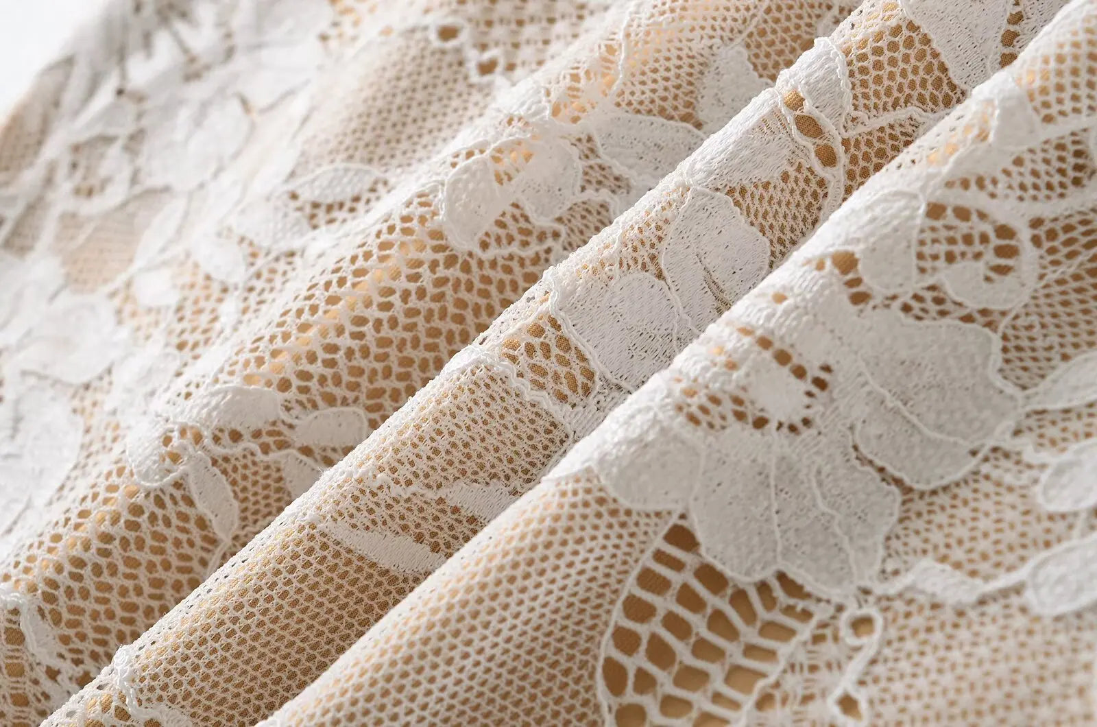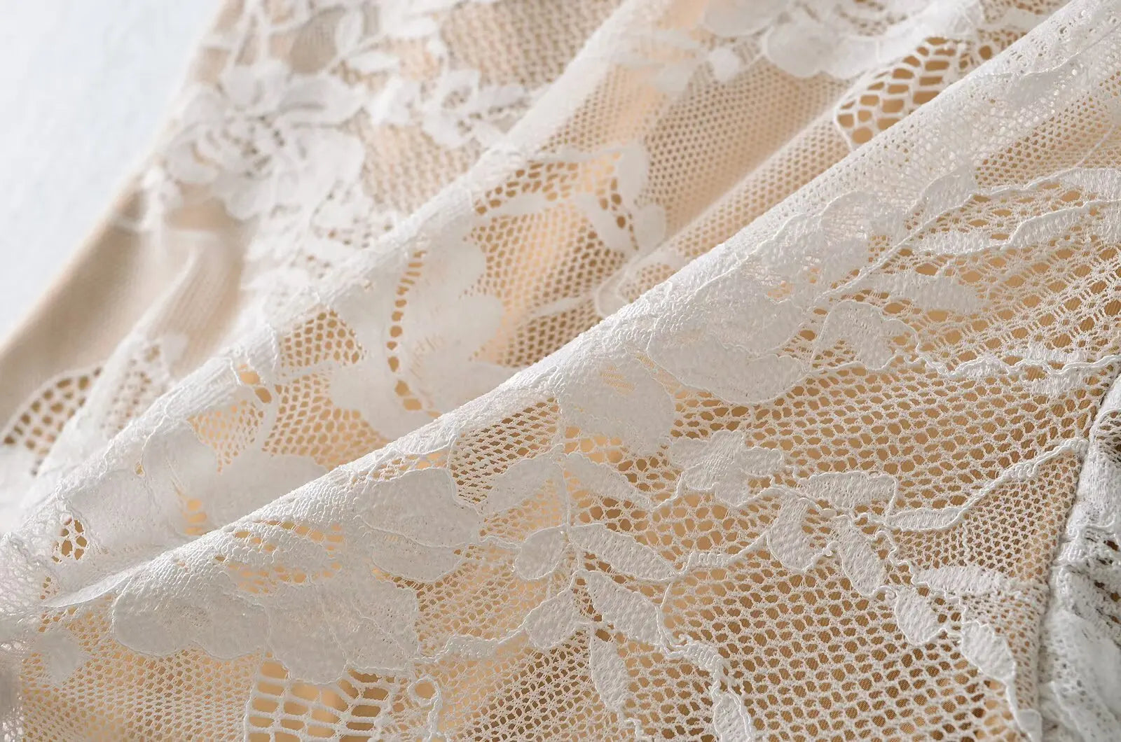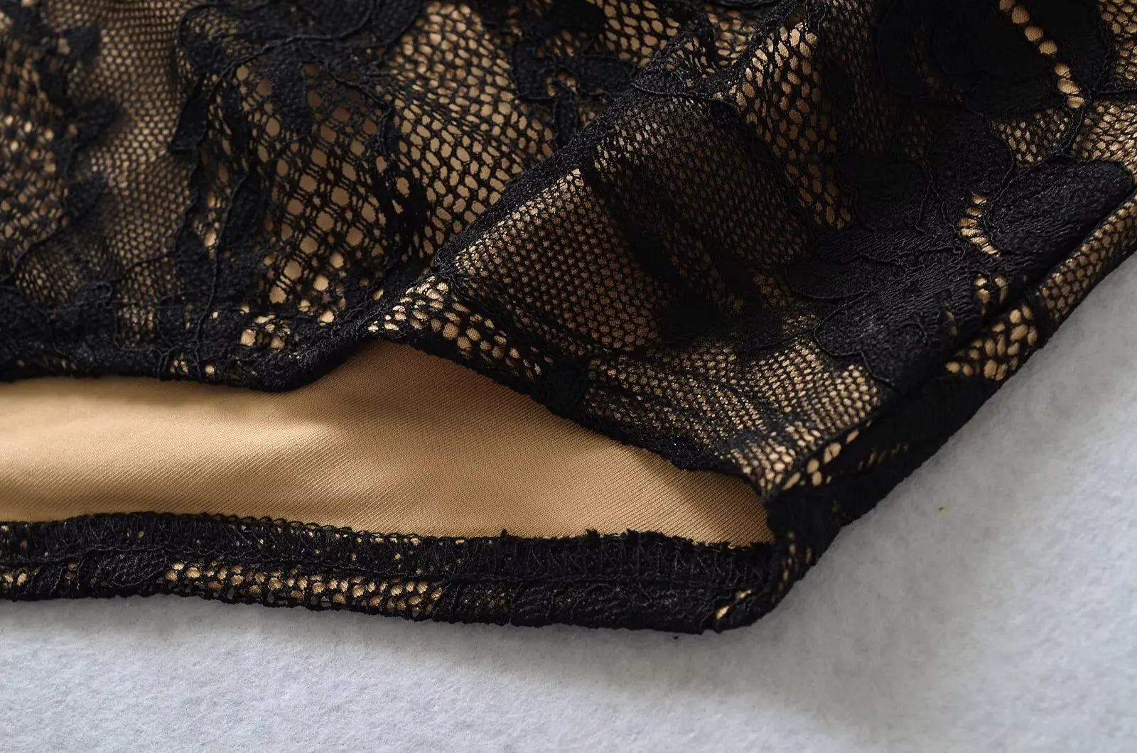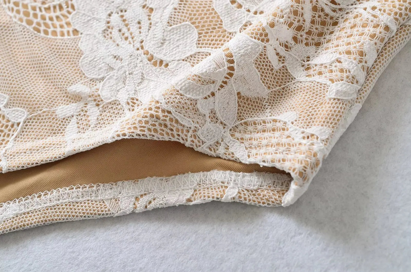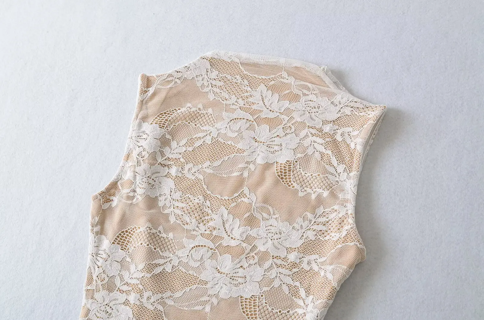 Fall 2025 color-blocked lace bodysuit, high neck, sleeveless, sexy