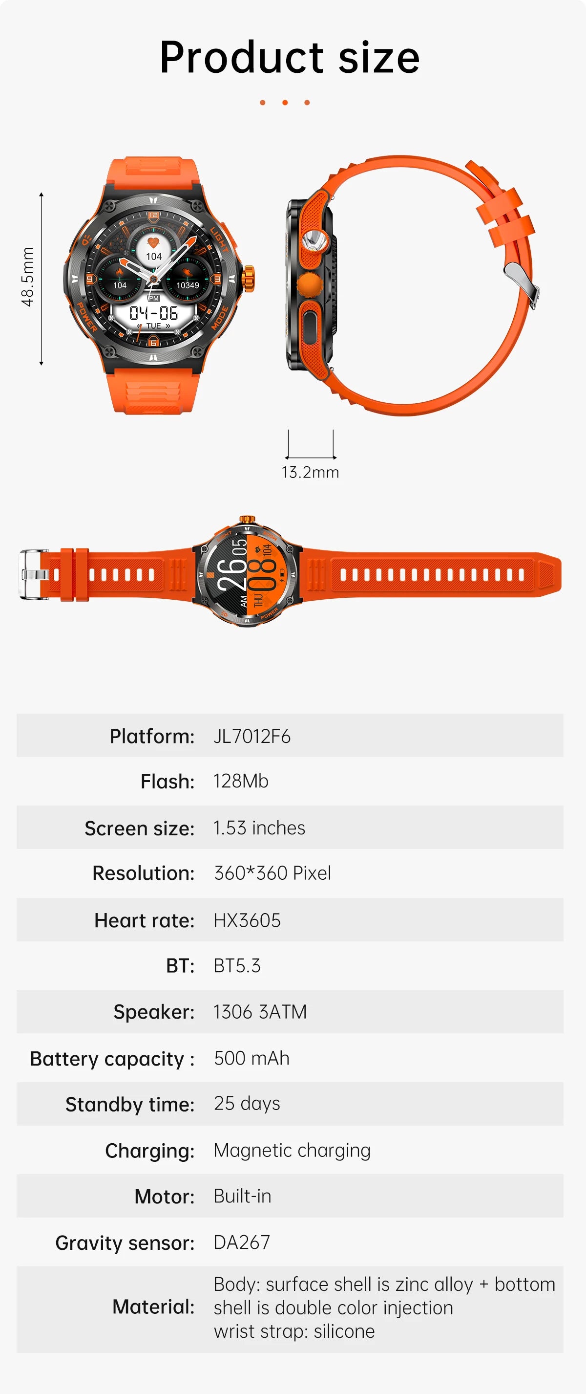 2024 new Smart Watch Men KT76 Sport Smart watches For Men Woman LED Flashlight Compass Bluetooth Call Heart Rate 3ATM Waterproof