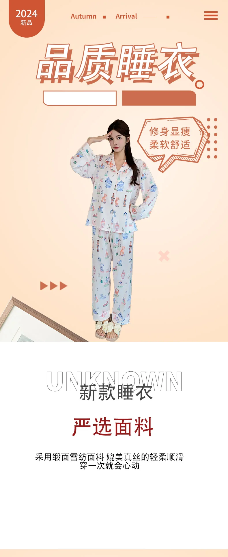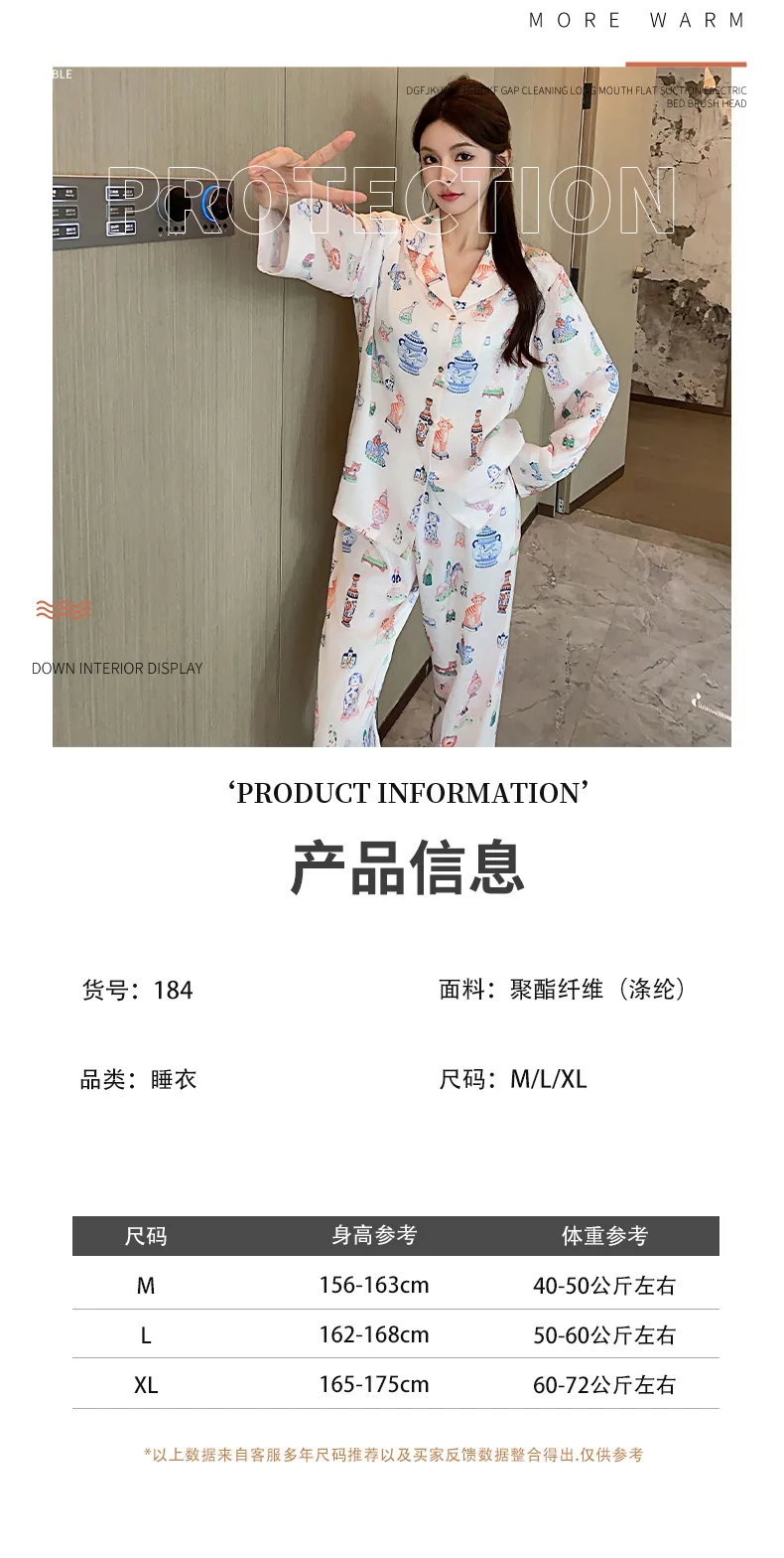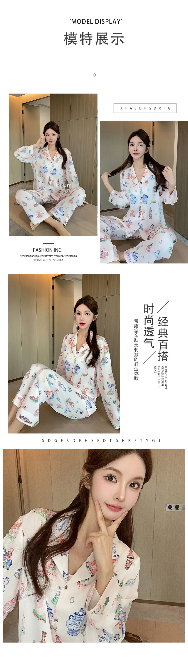 2024 spring new women's silk pajamas pink cartoon print long sleeve trousers sleepwear casual satin plus size home wear set |