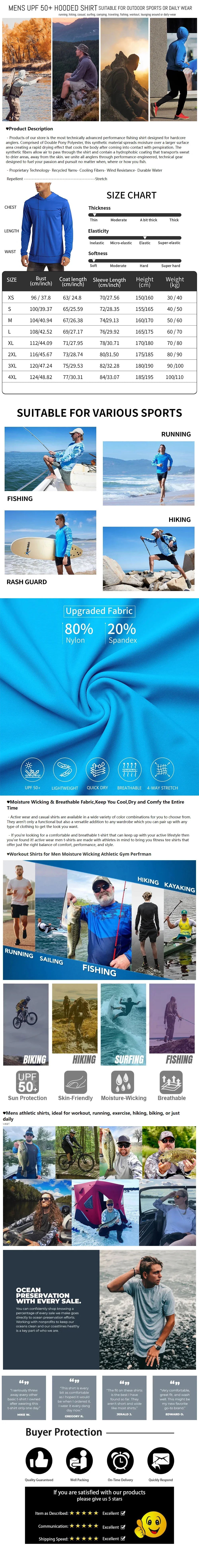 Protect your skin with the 2025 Men's Sun Protection Hooded T-Shirt ! The product is designed with UPF 50+ technology to effectively block UV rays. With long sleeves and quick-drying ability, this T-shirt is ideal for outdoor activities such as climbing and fishing. Breathable material brings comfort all day long. Size 4XL is suitable for all body types. This is the perfect choice for you to confidently explore every journey.