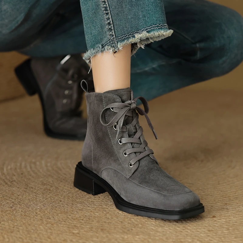 Featuring a retro square toe shape, these boots add a vintage touch to any outfit while maintaining comfort.
