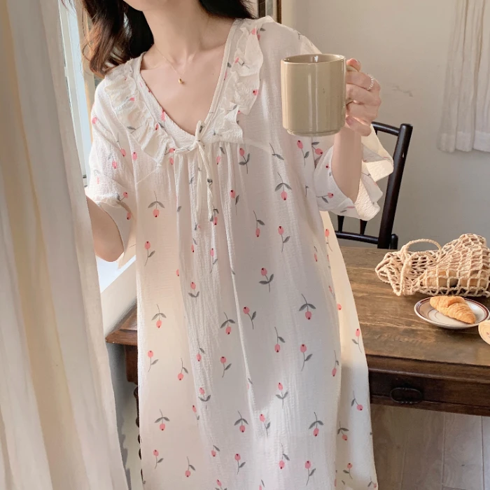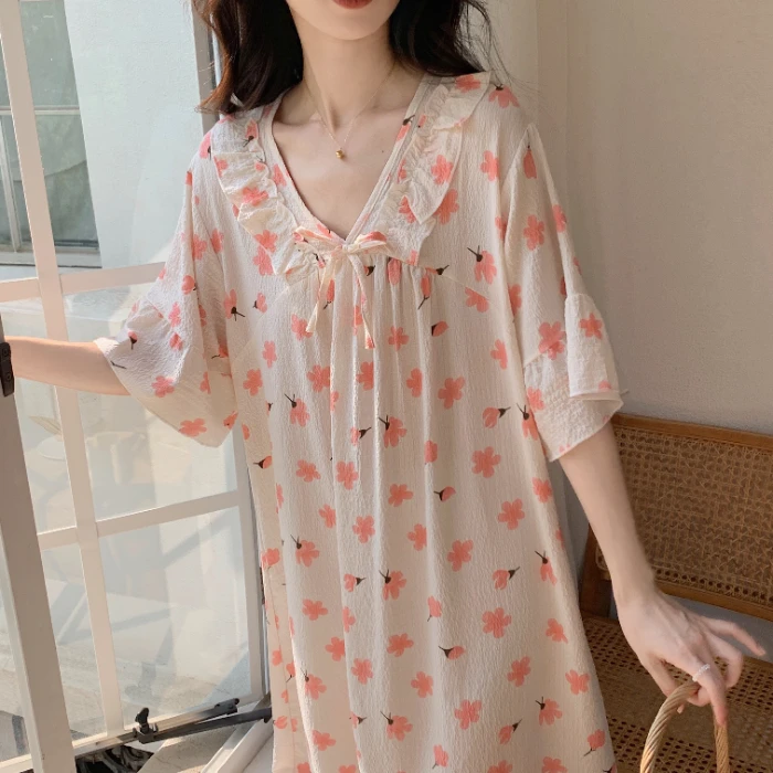 2025 Summer Floral Pajamas Set Cotton Women Big Size Cool