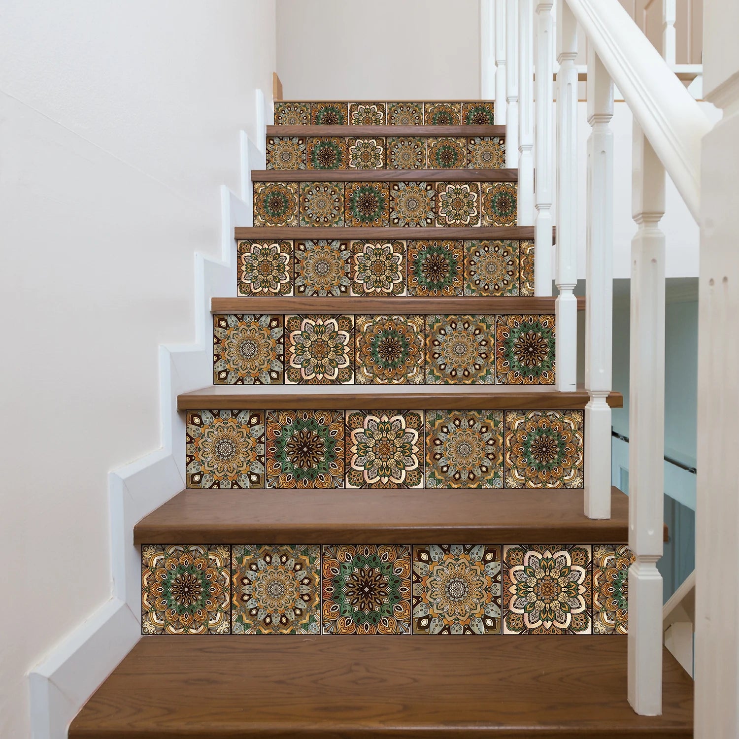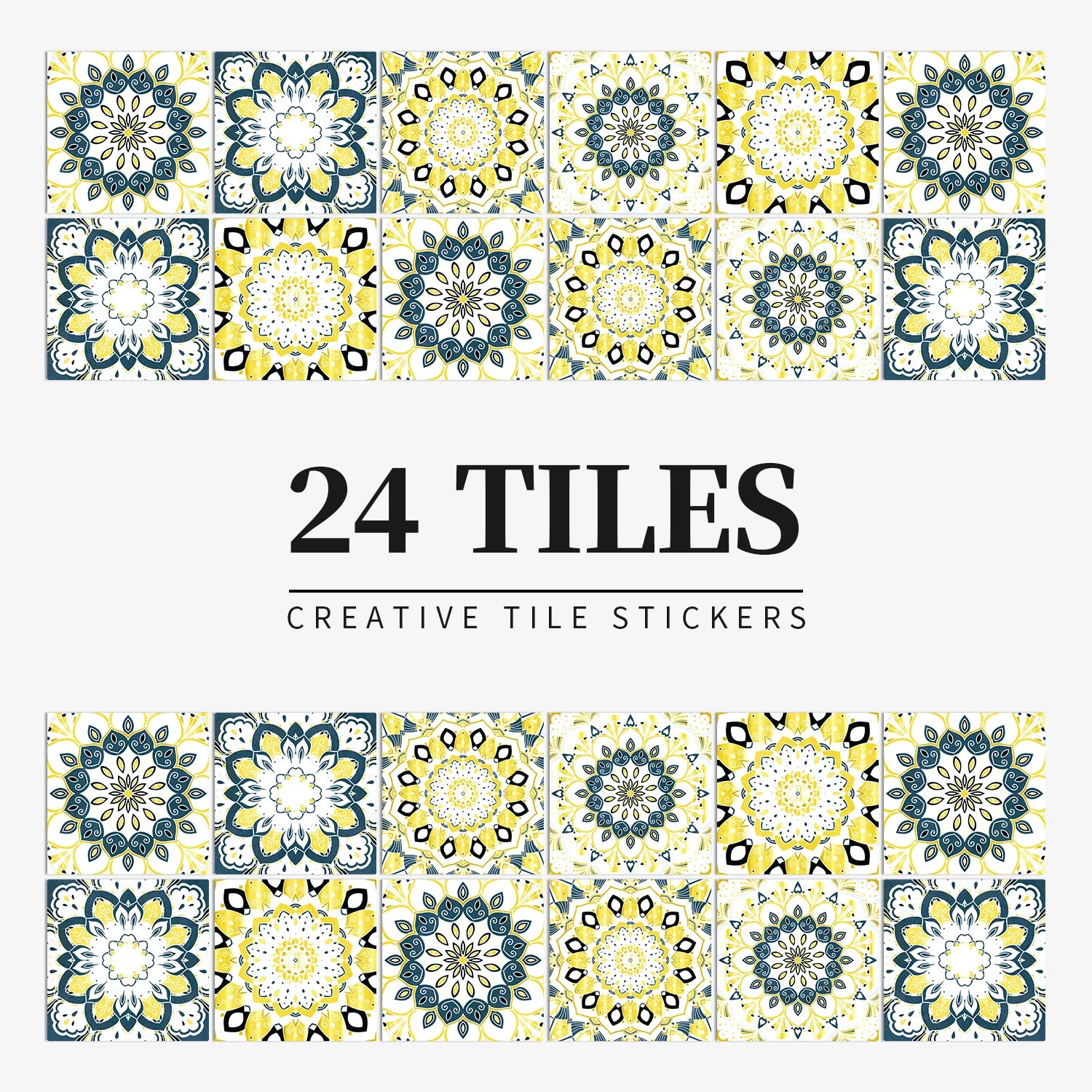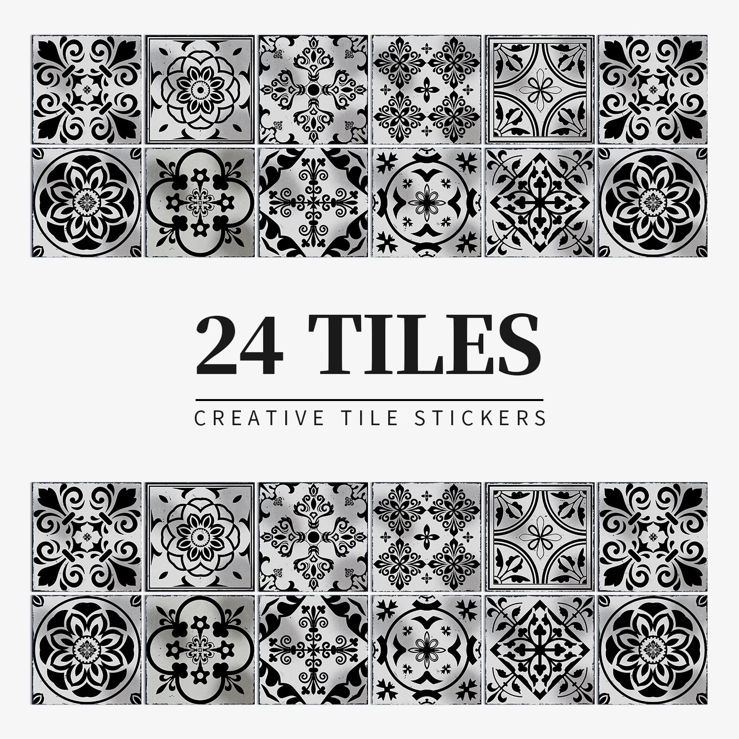 24Pcs European retro style Art Tile Wall Stickers With Self Adhesive Removable Bathroom Kitchen Waterproof Pvc Decal Wallpaper