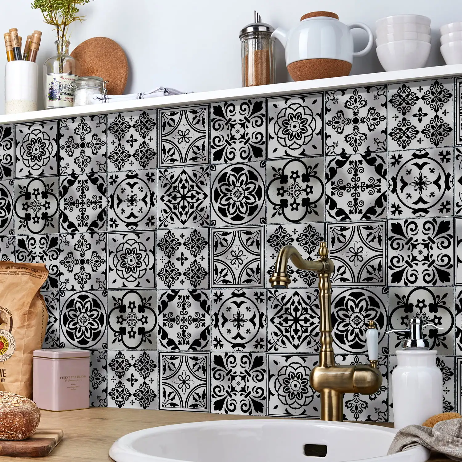 24Pcs European retro style Art Tile Wall Stickers With Self Adhesive Removable Bathroom Kitchen Waterproof Pvc Decal Wallpaper