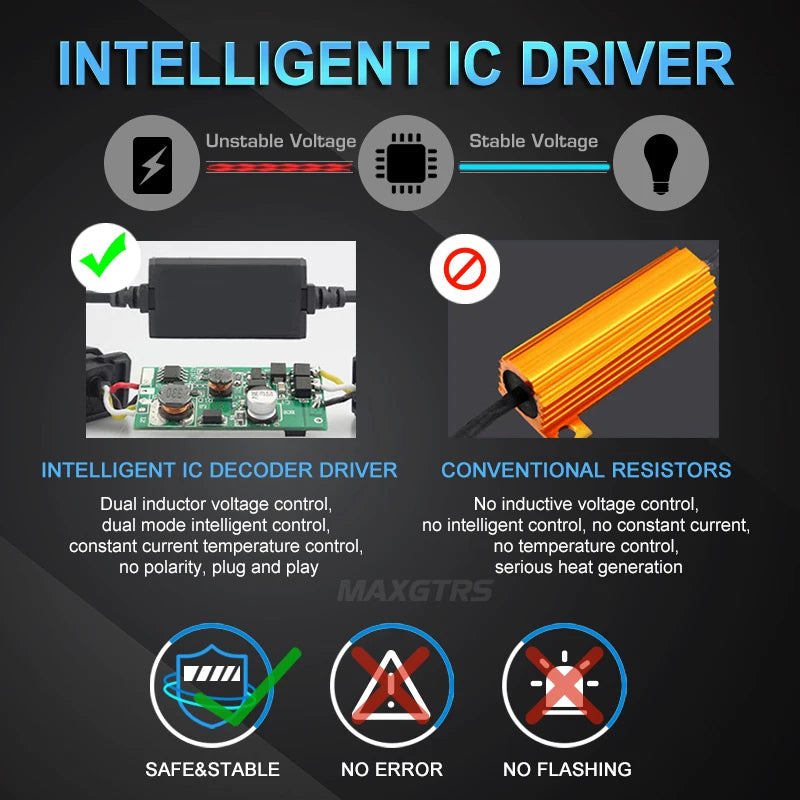 >> NO Hyperflash:This model has LED Decoder and constant IC Driver which can solve common LED turn signal problems with hyperflashing and bulb out warning indicators. Additional voltage stabilizer is not needed.
