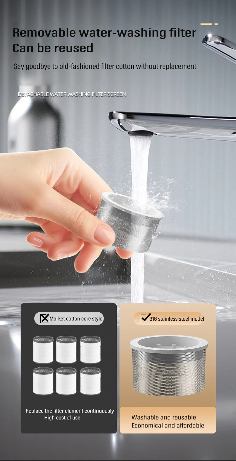 3-Mode Stainless Steel Faucet 360° Rotation Dual Filter Kitchen