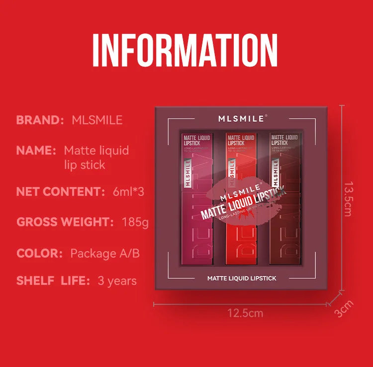 3-Color Matte Lipstick Set - Long-lasting, Smudge-proof, Waterproof