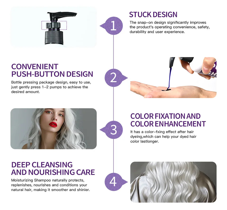 Ideal for post-bleaching and dyeing care, purple shampoo can protect and strengthen damaged hair and has a color-fixing effect, giving you the best protection for your hair color.