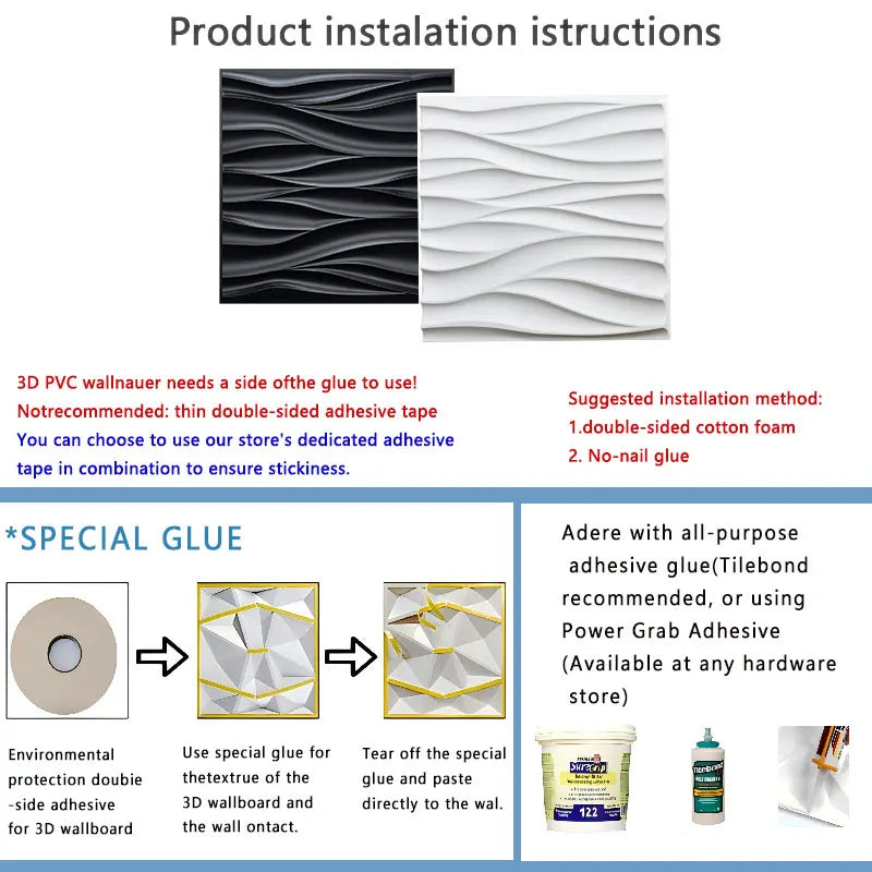 EASY TO INSTALL: Install by evenly applying adhesive (liquid nails recommended) to the back of each panel. Straight cuts and exits using a chainsaw, chainsaw, utility scissors. Electric box extender for better support of 3D effects