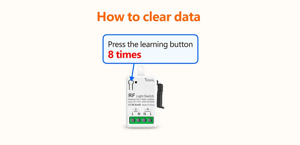 Step1:Press the learning button on the receiver 2 times , Wait for 3 seconds;