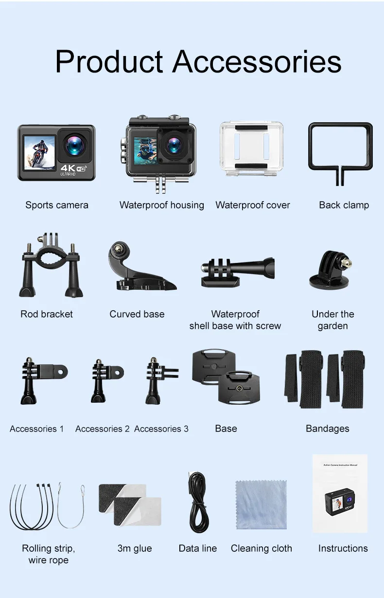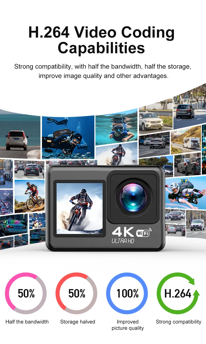 4K Waterproof WiFi Sports Camcorder 170° Wide Angle