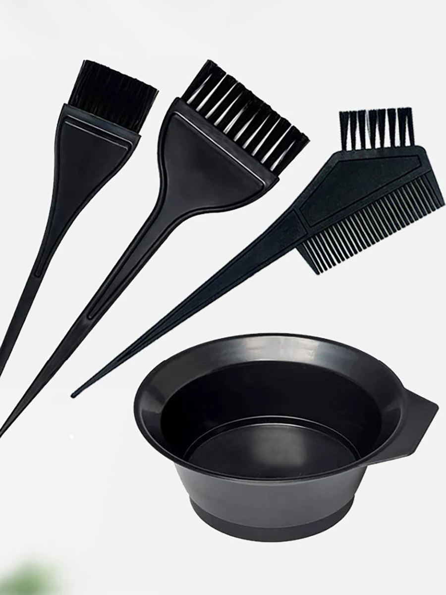 Set of 4 hair dyeing tools: bowl, brush, brush, mixing stick