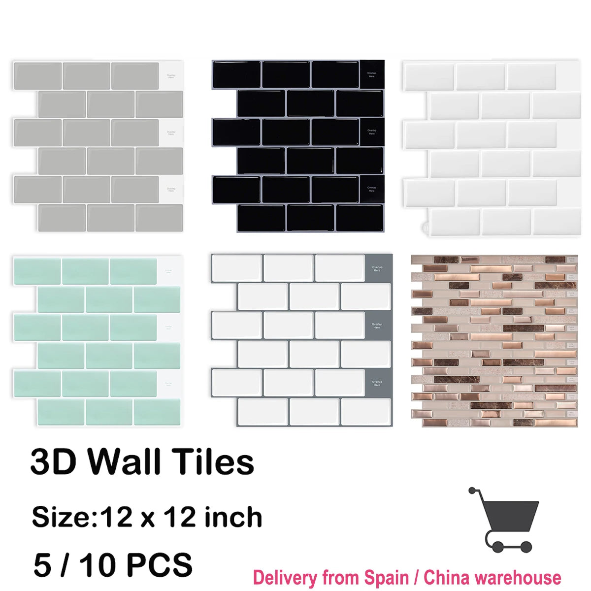 5/10pcs 3D Waterproof Kitchen Wall Sticker 12*12 inch Strong Adhesive Peel And Stick Tiles Home Wallpaper