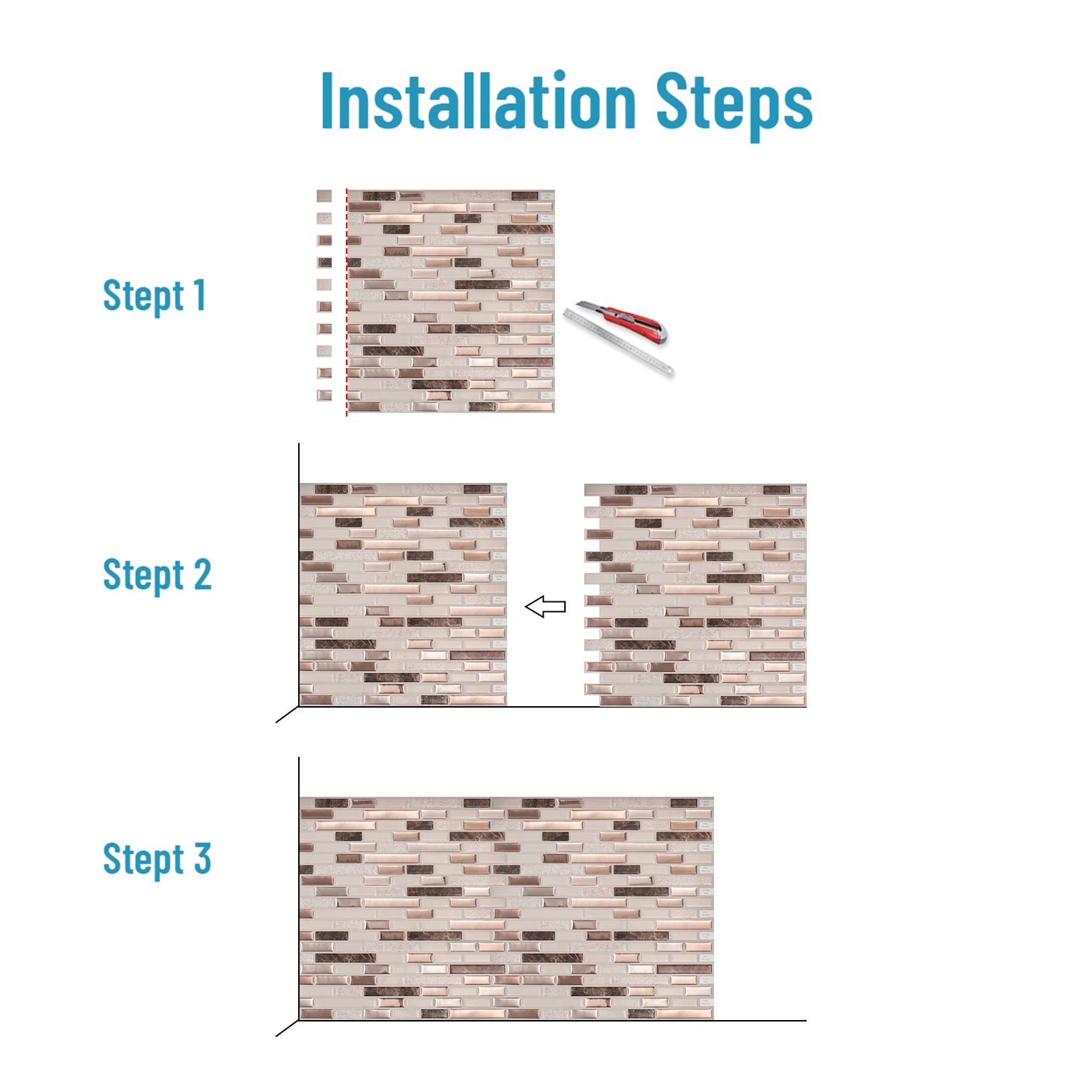 The tiles can be easily installed directly over existing panels or smooth surface. Especially designed for kitchen backsplash and bathroom backsplash, the tiles are resistant to the heat of stove tops and the humidity of bathrooms.