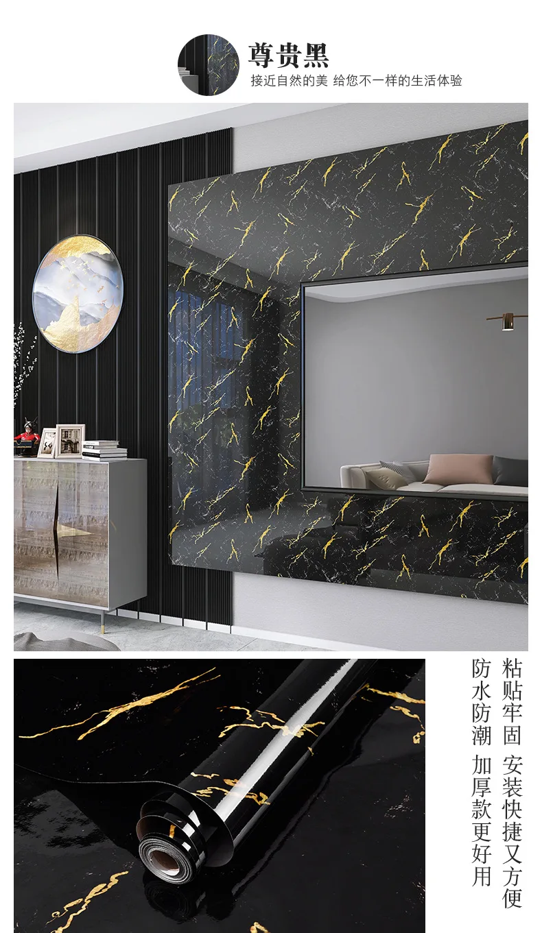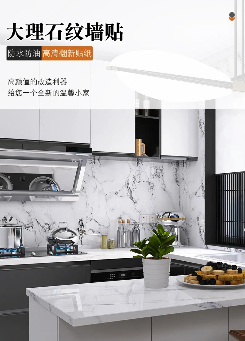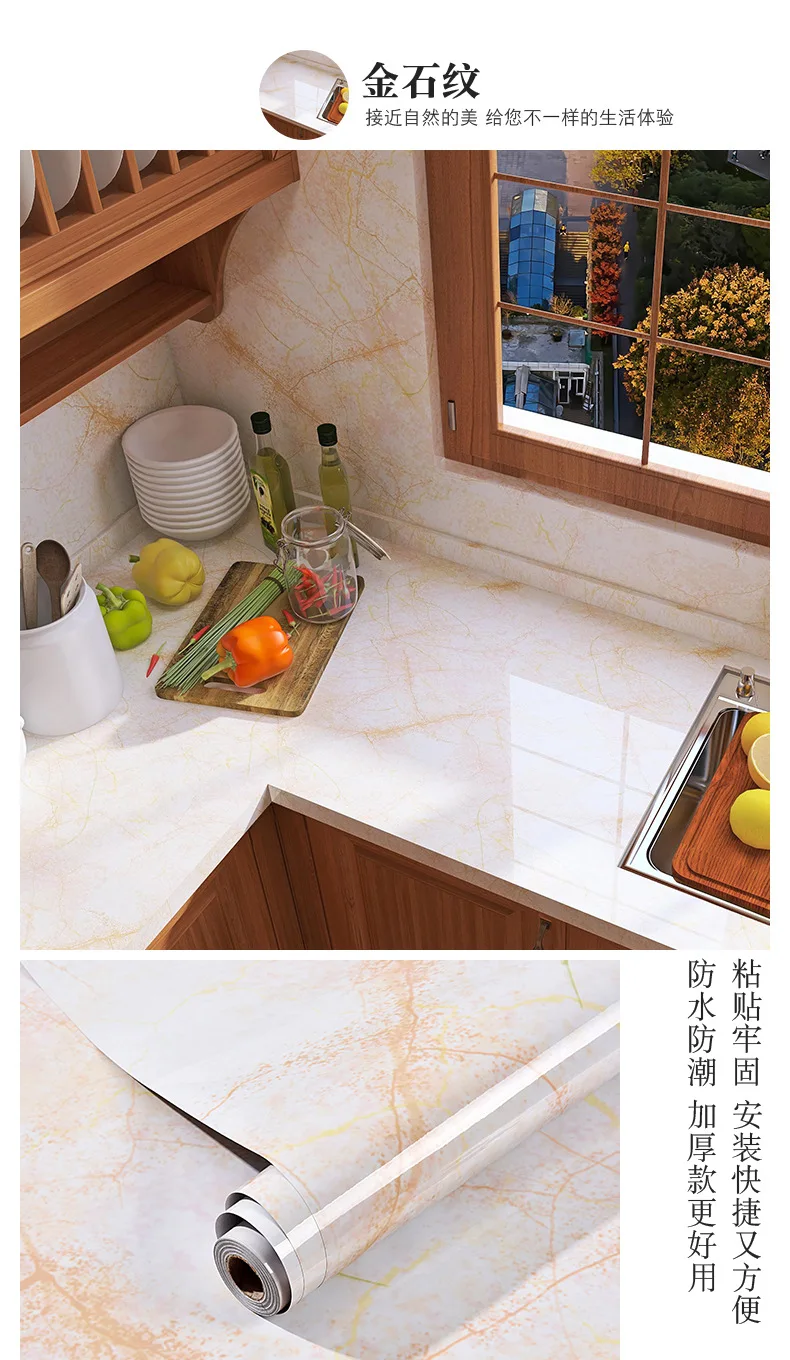 60cm Marble Vinyl Film Self Adhesive Wallpaper Bathroom Kitchen Cupboard Countertops Contact Paper PVC Waterproof Wall Stickers
