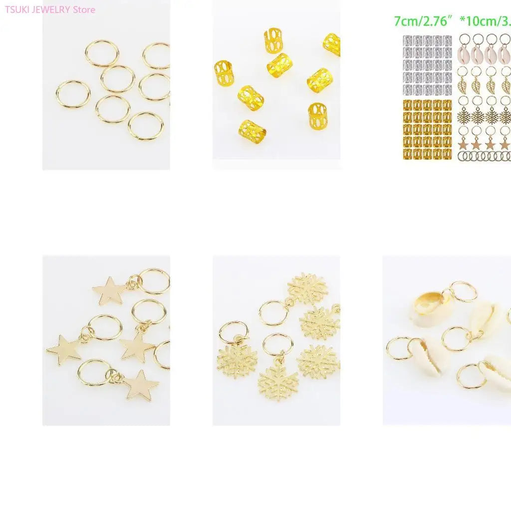50pcs dreadlocks beads metal cuffs, 30pcs DIY hair braid ring pendants embellishments.