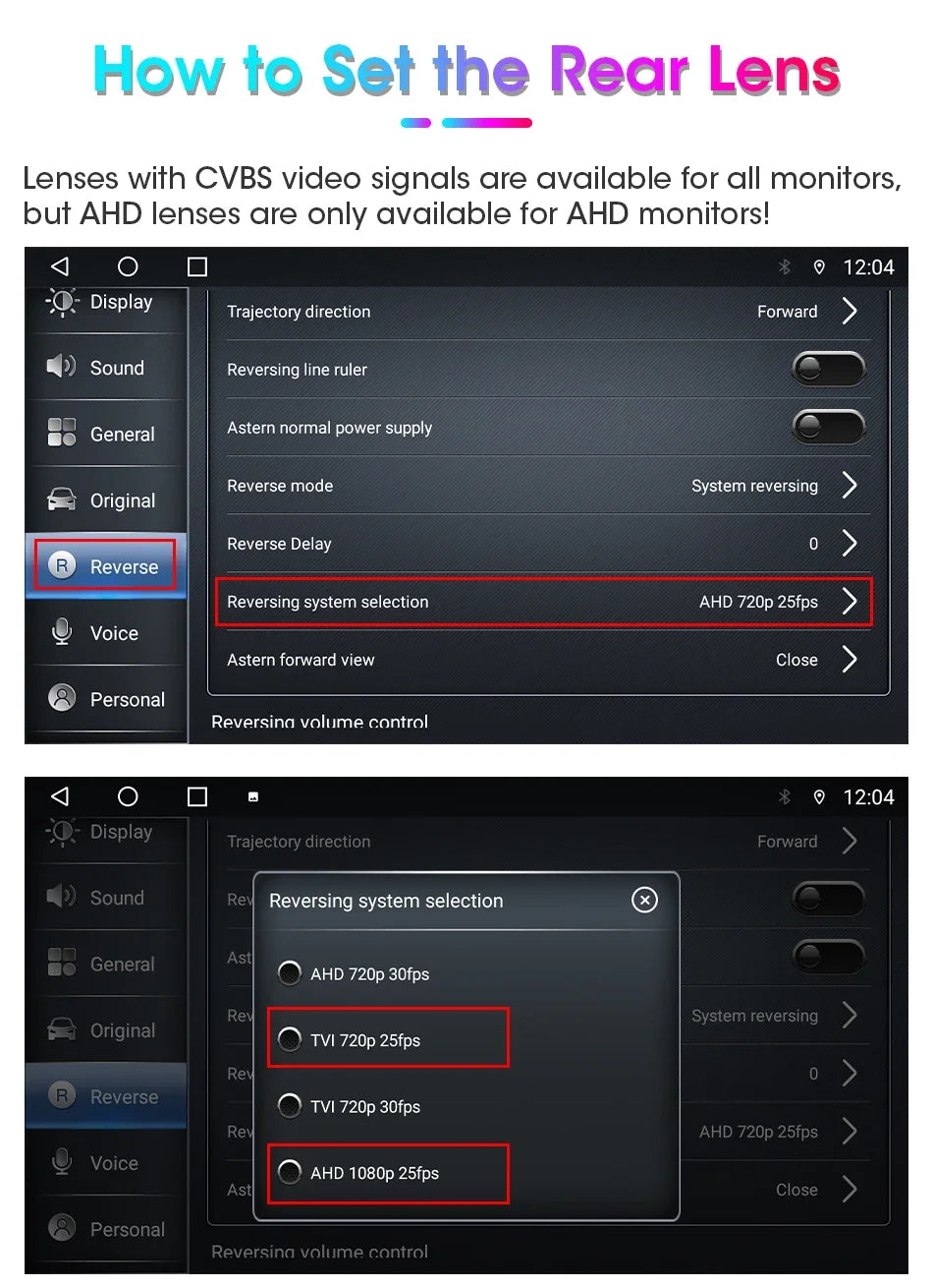- Support AHD/CVBS video pixels,AHD:1280*720