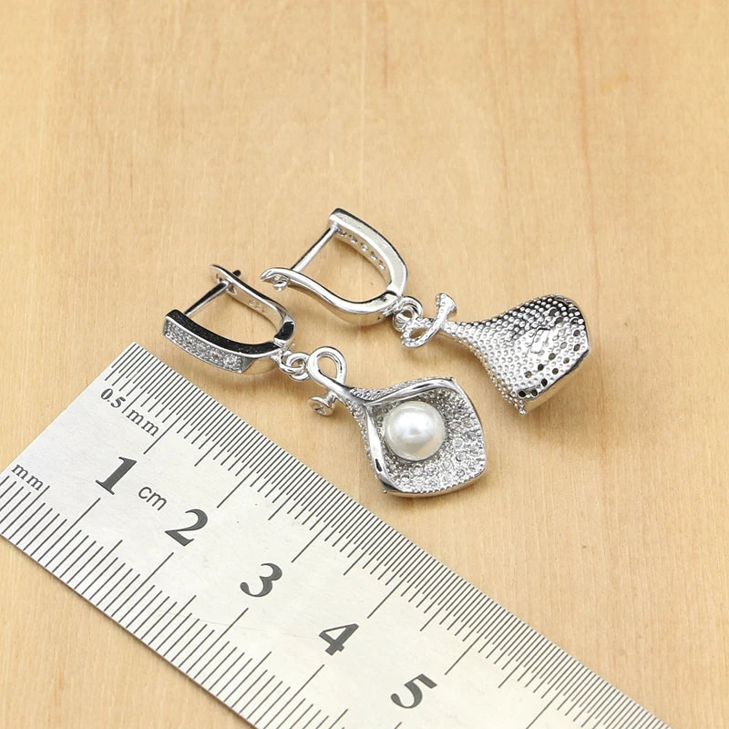 Elegant 925 Silver Pearl Wedding Jewelry Set