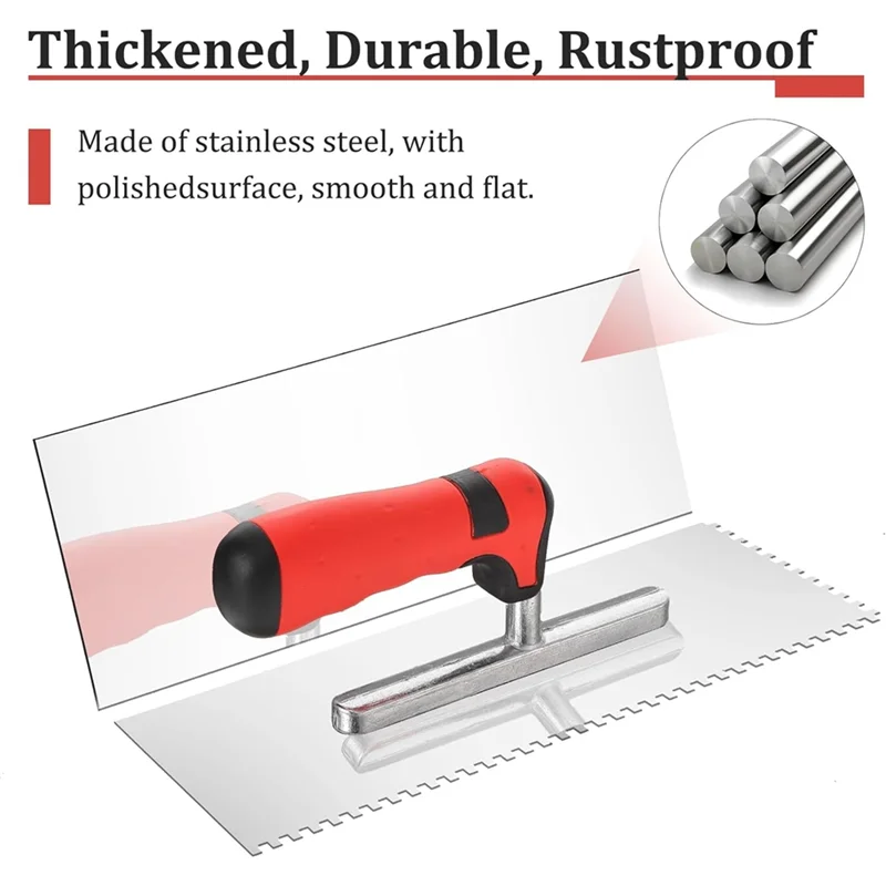 ABJI-For Wall Floor Tile Installation Kits 4-Piece Stainless Steel Trowel Set Square Notched Masonry Hand Tool