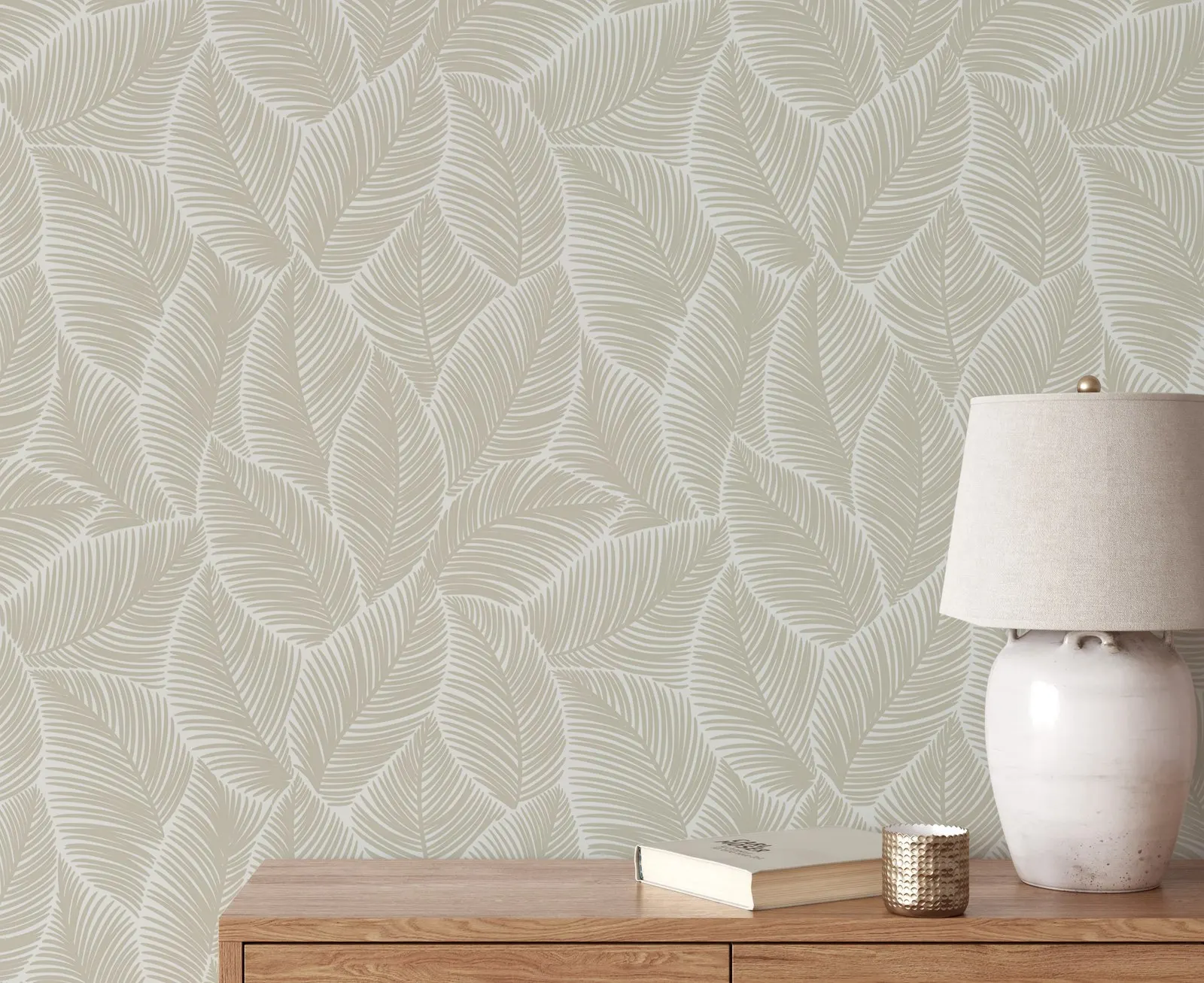 Abstract Gray Leaves Wallpaper Peel and Stick, Restore Style Tropical Palm Leaf Wallpaer,Traditional Or Self-adhesive Papers