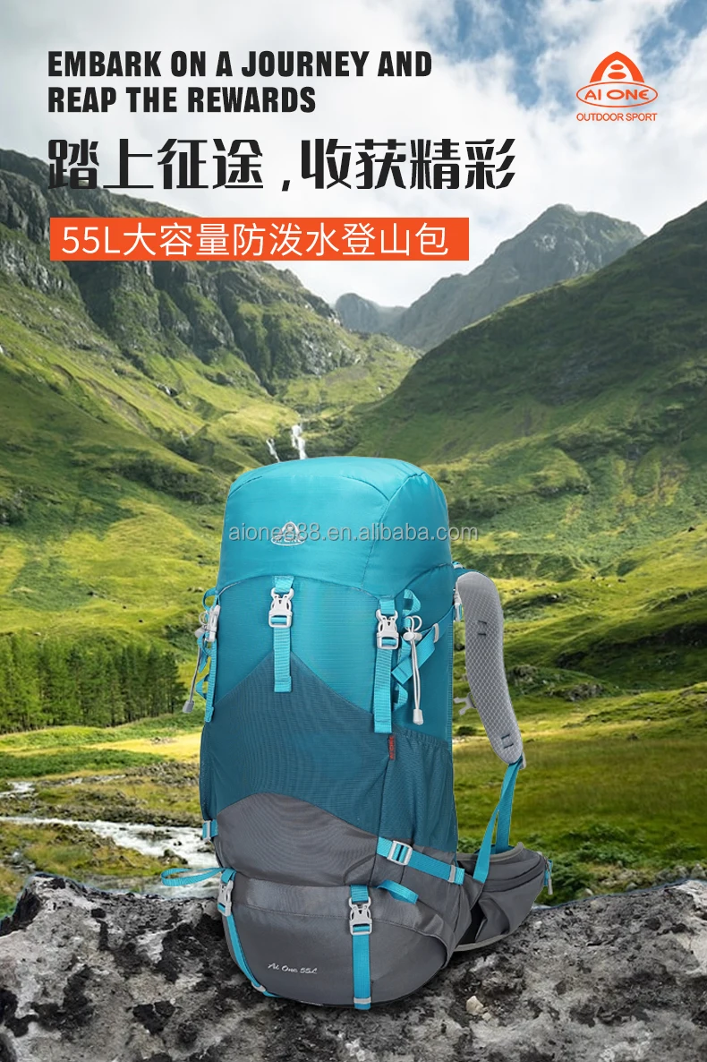 AIONE KA-8222 55L Waterproof Hiking Backpack with Raincoat, Large Outdoor Sports Travel Climbing Backpack