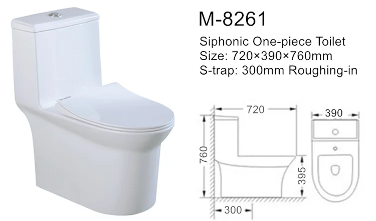Siphonic S-trap 300mm One-piece Ceramic Hotel Toilet