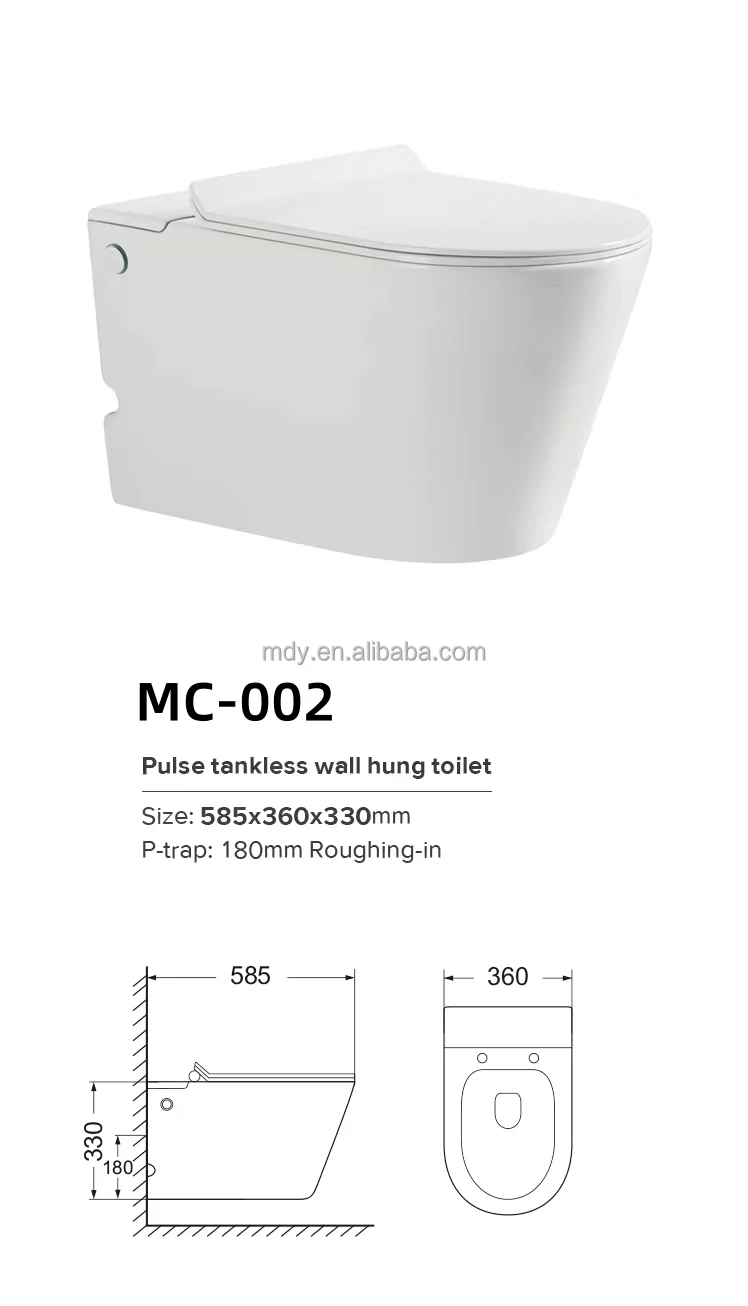 Medyag wall hung ceramic toilet without tank, without tank, with sink, with battery for bathroom