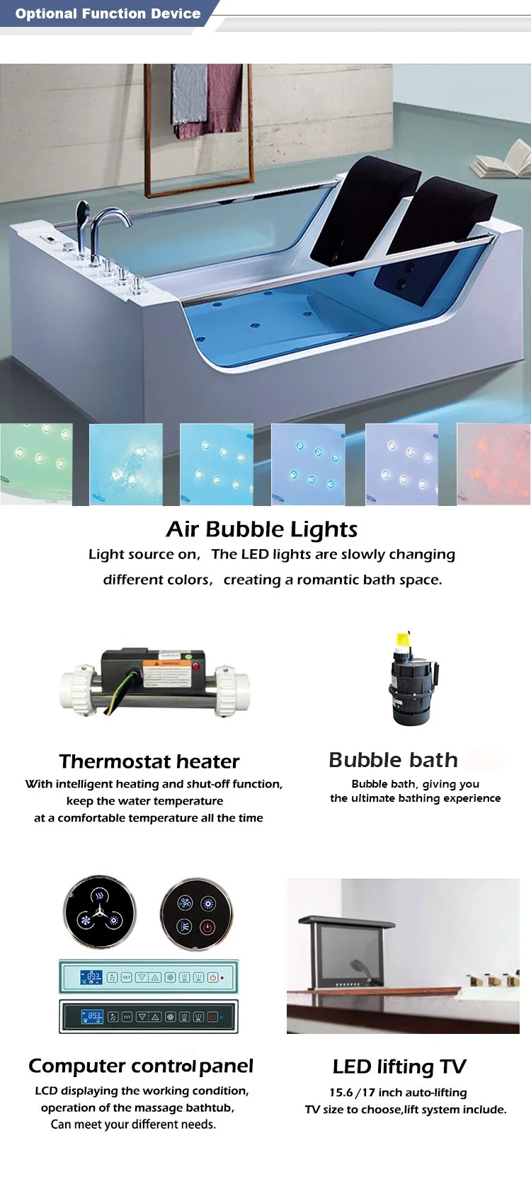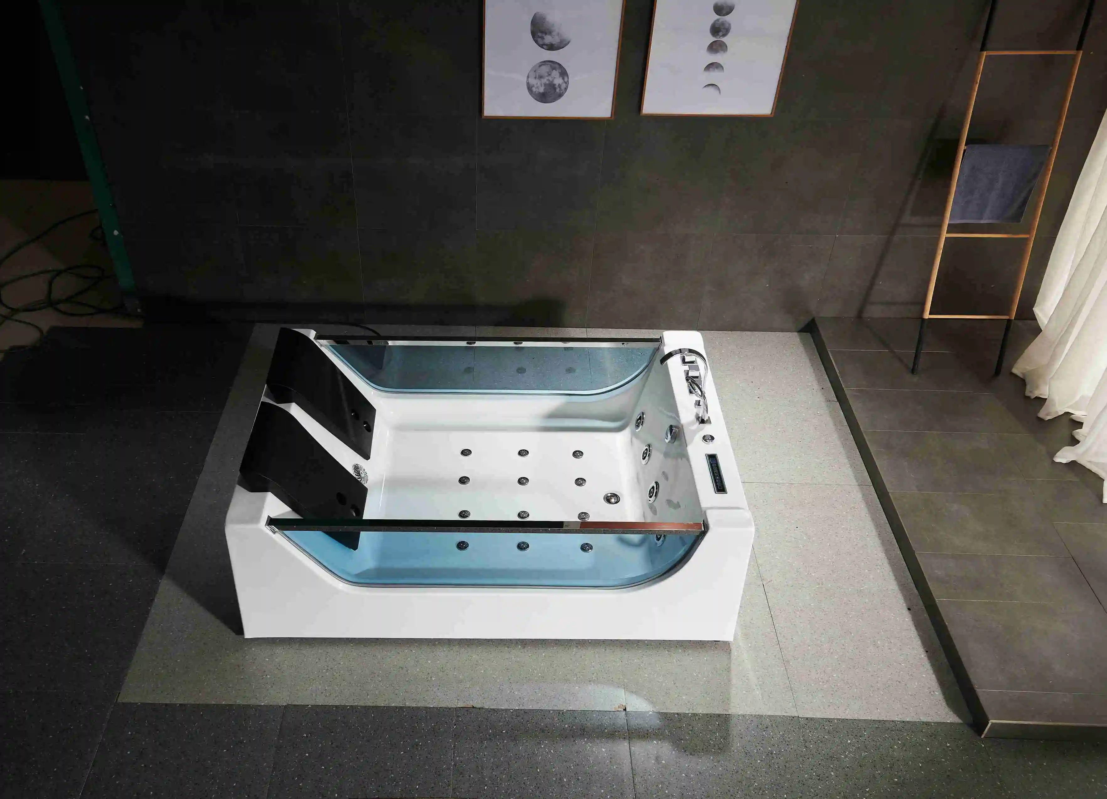 Luxury 2 Person Jacuzzi Bathtub, Glass Freestanding Bathtub, Adult Bathtub, Jetted Tub, Waterfall Bathtub
