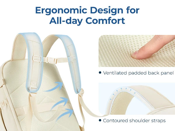 Comfortable Backpacks:Breathable and adjustable curved padded shoulder straps help relieve pressure on the shoulders, making you carrying more comfortable.