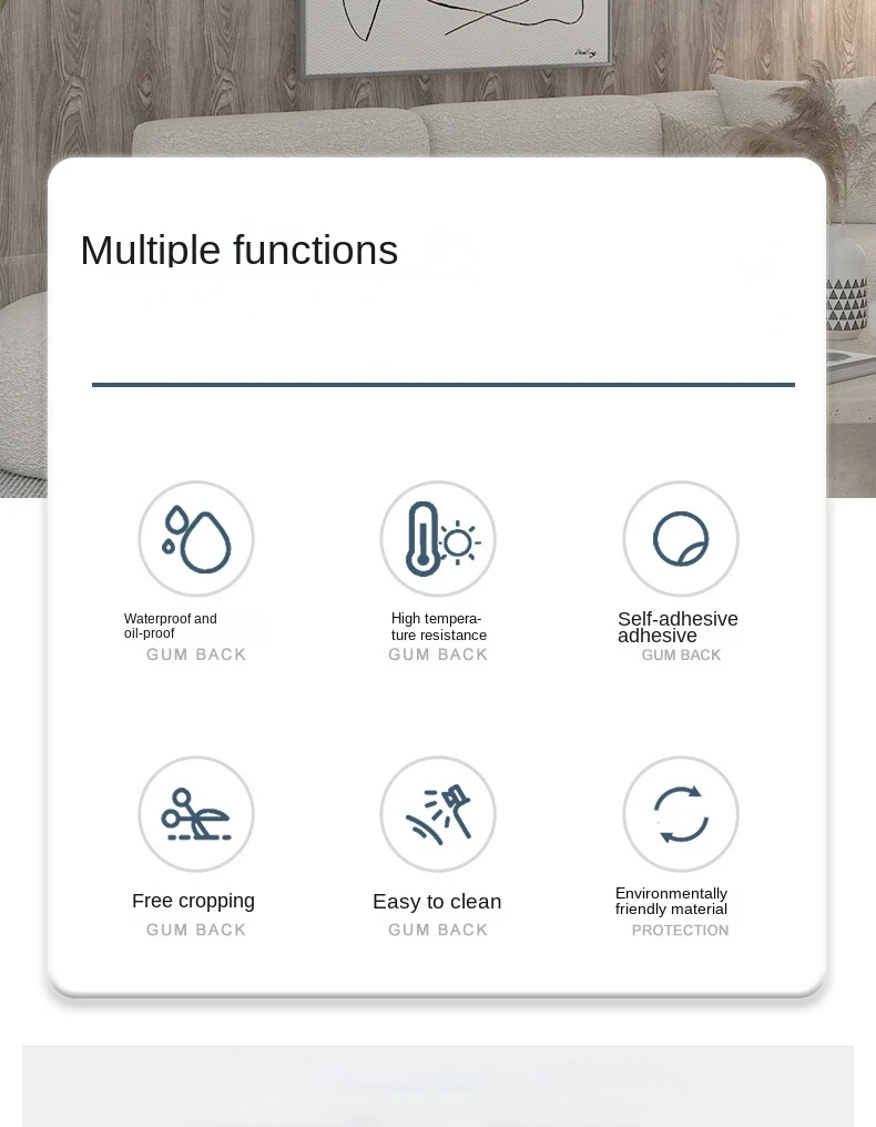 Features: Thickened, self-adhesive, waterproof, oil resistant, moisture-proof, stain resistant, easy to scrub