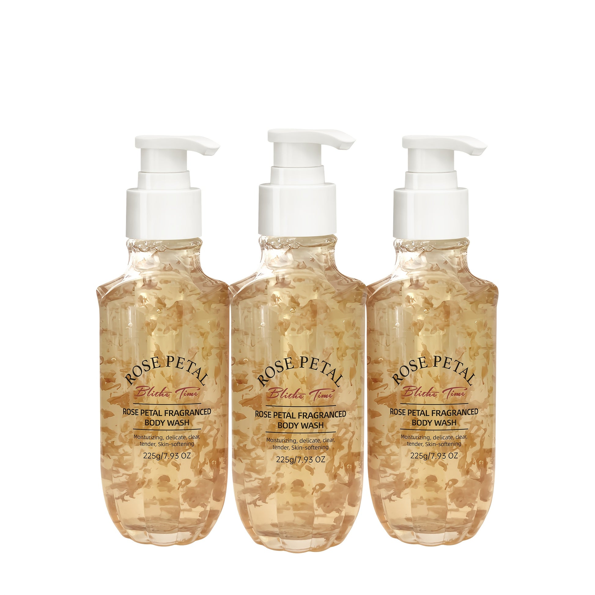 Séfralls rose petal scented shower gel 225g*3pcs, rose petal body wash, women's shower gel, floral scented body wash, gently cleanses the skin, moisturizing without greasiness, made with natural ingredients, fine foam, long-lasting floral fragrance, nourishes the skin, suitable for all skin types, unisex, fresh scent, perfect gift for Valentine's Day.