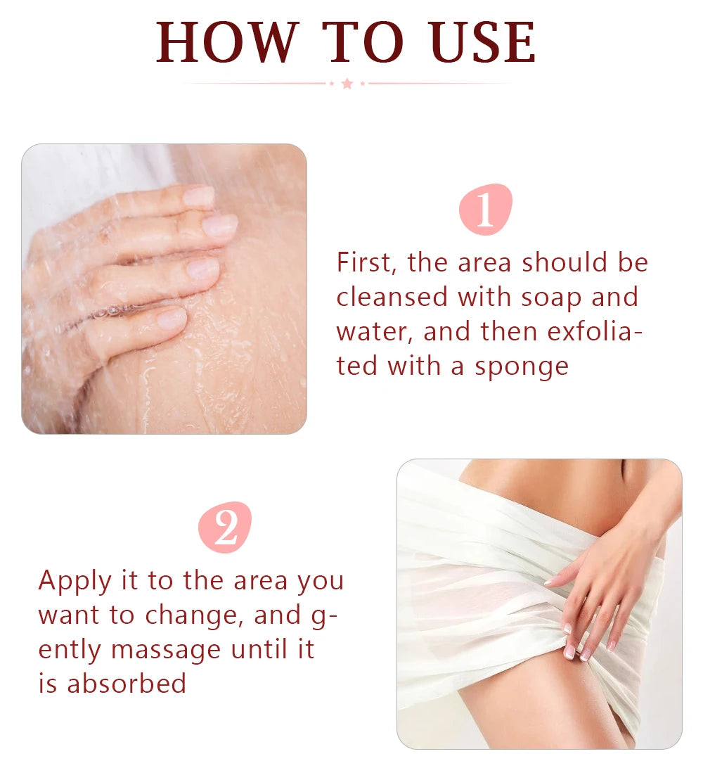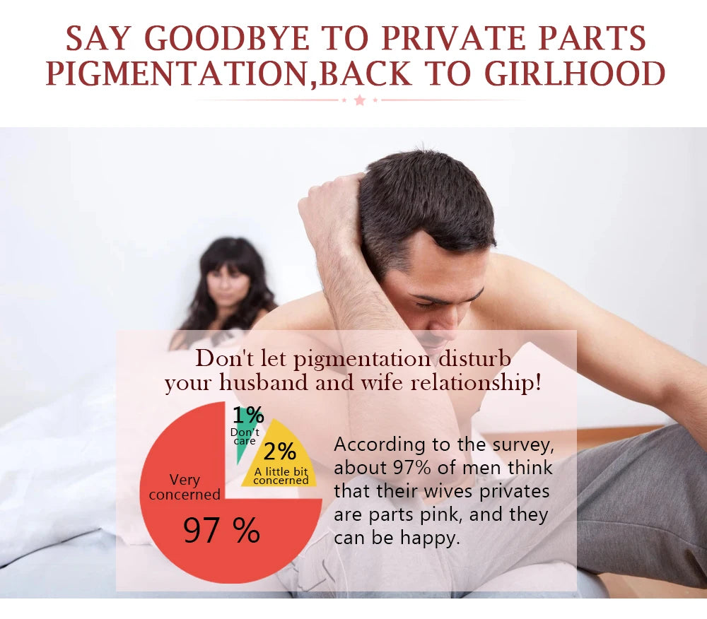 Benefit:Natural active composition,which quickly reaches the deep skin,improve the rough and dull lips,break down the areola pigmentation and make areolas pink,moisturize the labium and break down labia pigmentation,leaving your privates parts pink and attractive