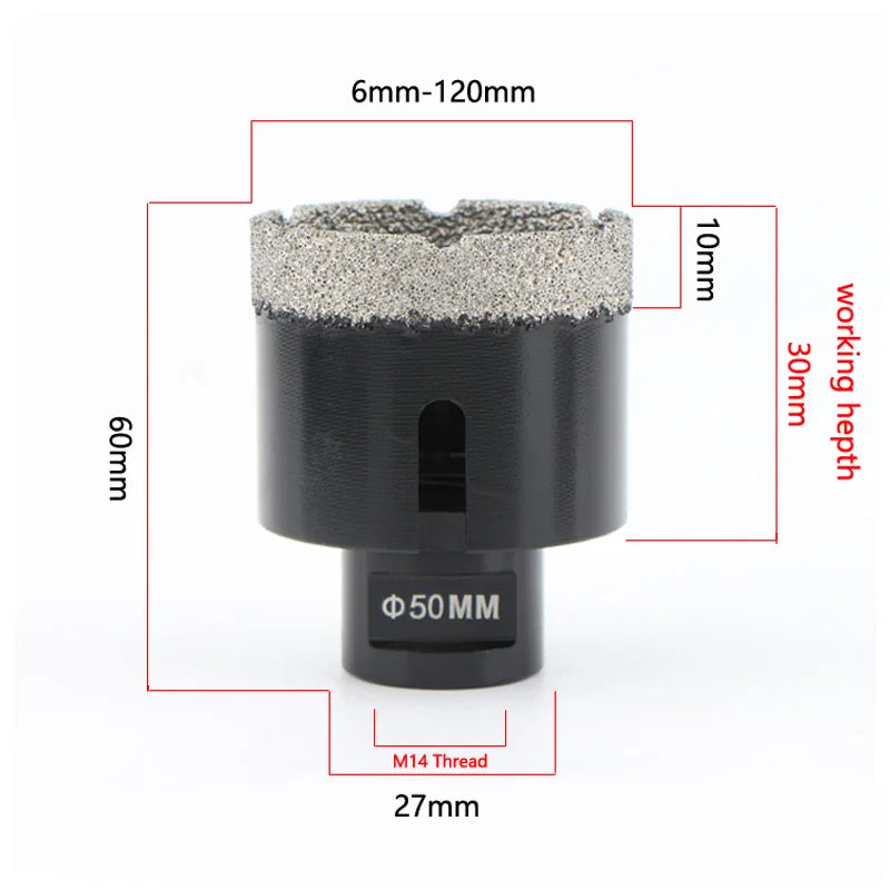 M14 Thread Vacuum Brazed Diamond Dry Drilling Bit Hole Saw Ceramic Tile Granite Marble Hole Opener Tools